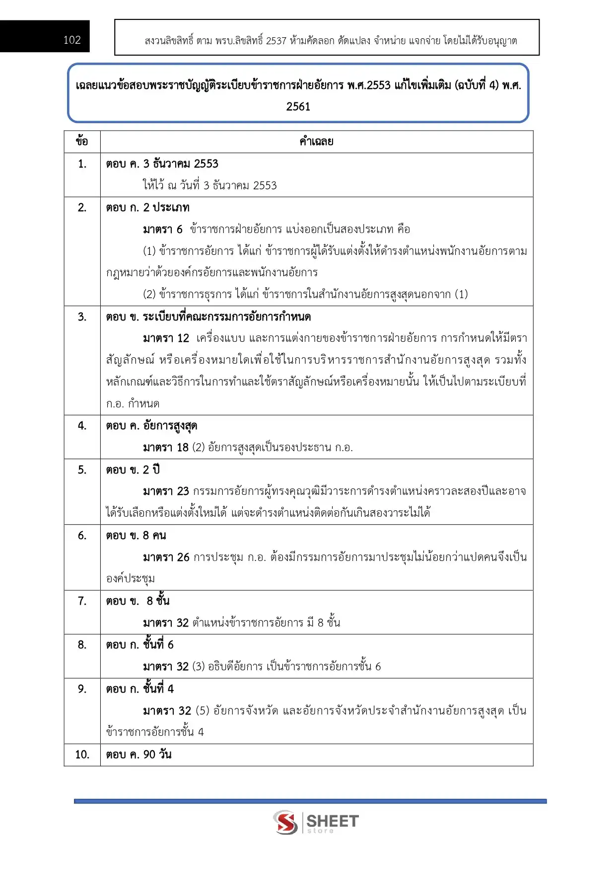 – แนวข้อสอบพระราชบัญญัติระเบียบข้าราชการฝ่ายอัยการ พ.ศ. 2553 และ แก้ไขเพิ่มเติม (ฉบับที่ 4) พ.ศ. 2561