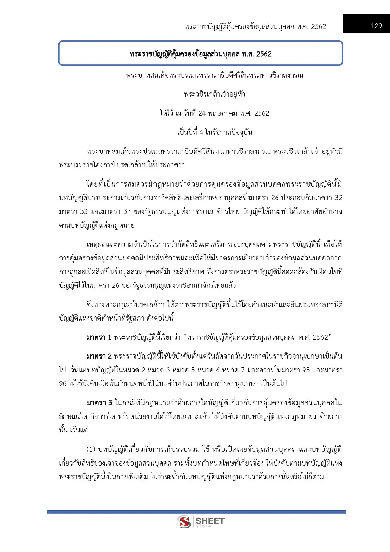 – พระราชบัญญัติคุ้มครองข้อมูลส่วนบุคคล พ.ศ. 2562