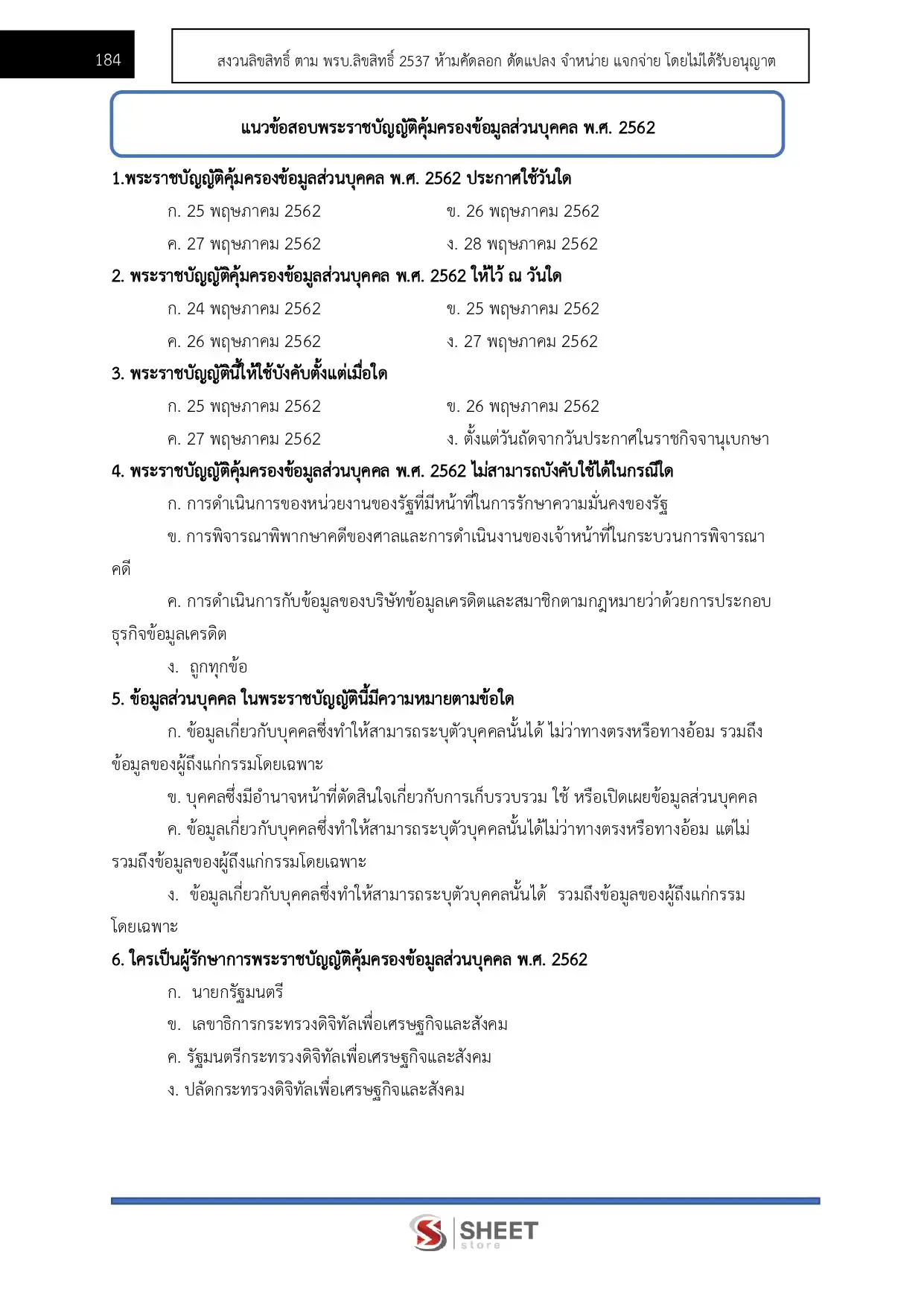 – แนวข้อสอบพระราชบัญญัติคุ้มครองข้อมูลส่วนบุคคล พ.ศ. 2562