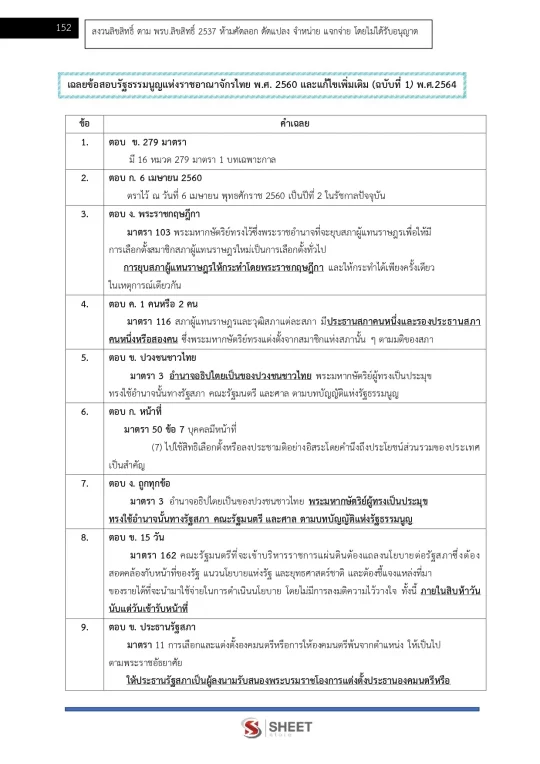 - แนวข้อสอบรัฐธรรมนูญแห่งราชอาณาจักรไทย พ.ศ. 2560 และที่แก้ไขเพิ่มเติม (ฉบับที่ 1) พ.ศ. 2564