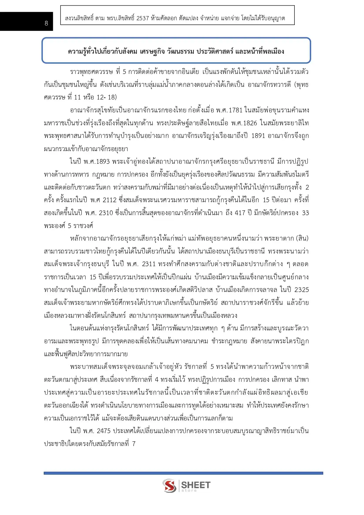 – ความรู้ทั่วไปเกี่ยวกับสังคม เศรษฐกิจ วัฒนธรรม ประวัติศาสตร์ และหน้าที่พลเมือง