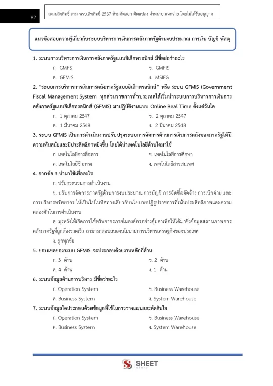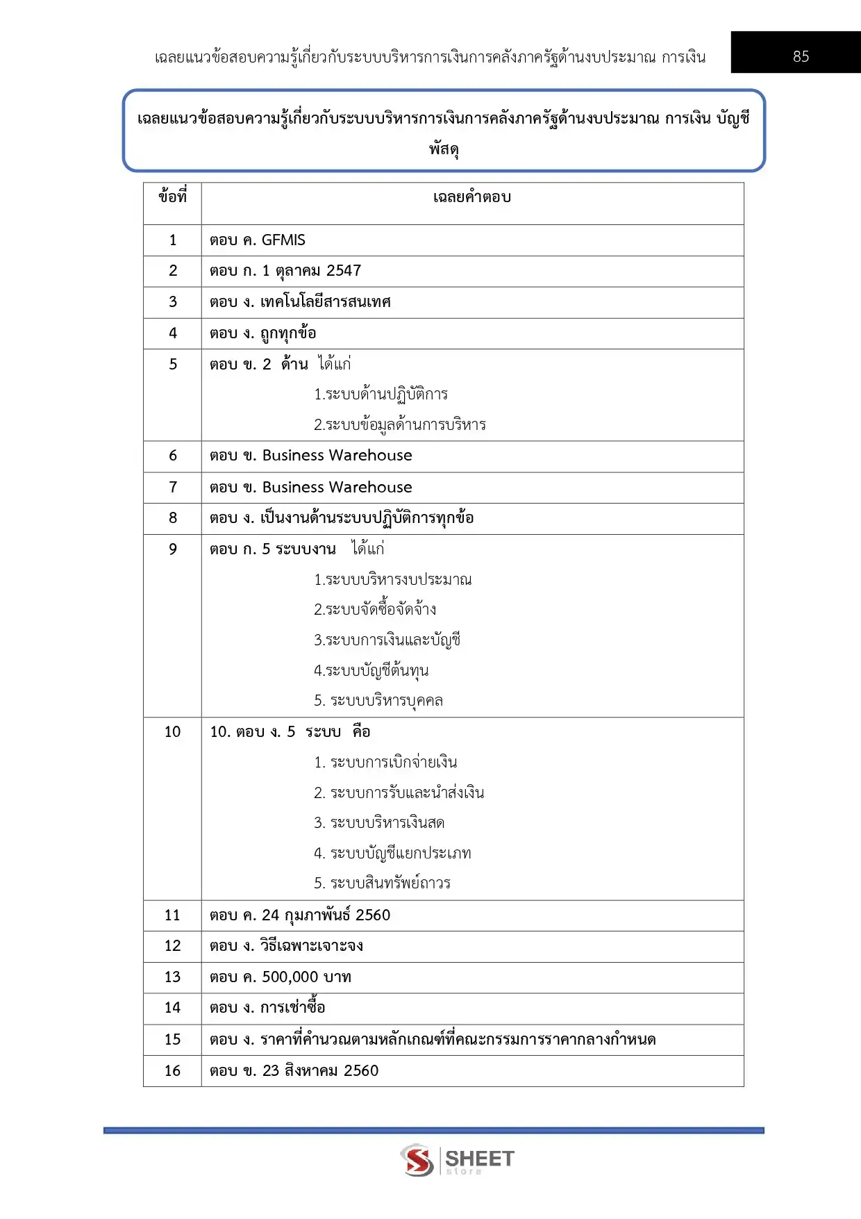 – แนวข้อสอบความรู้เกี่ยวกับระบบบริหารการเงินการคลังภาครัฐด้านงบประมาณ การเงิน บัญชี พัสดุ