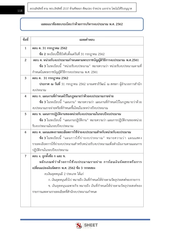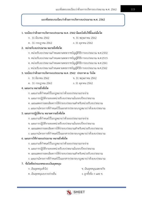 – แนวข้อสอบระเบียบว่าด้วยการบริหารงบประมาณ พ.ศ. 2562