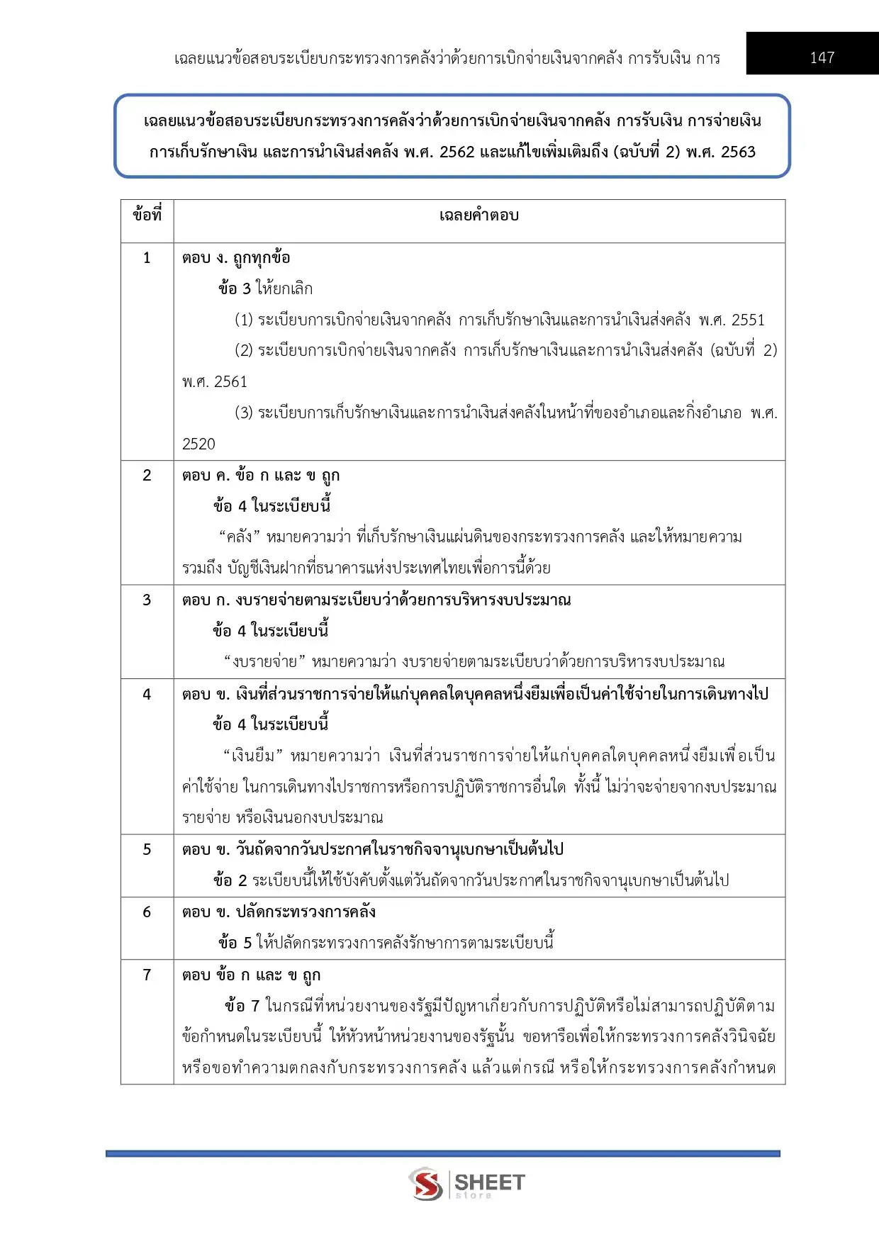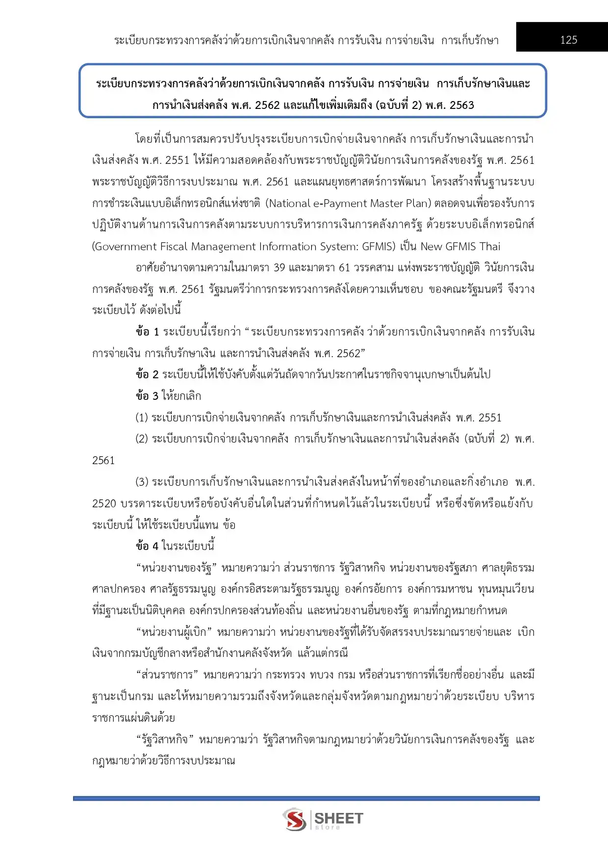– แนวข้อสอบระเบียบกระทรวงการคลังว่าด้วยการเบิกเงินจากคลัง การรับเงิน การจ่ายเงิน การเก็บรักษาเงินและการนำเงินส่งคลัง พ.ศ. 2562 และที่แก้ไขเพิ่มเติมถึง (ฉบับที่ 2) พ.ศ. 2563
