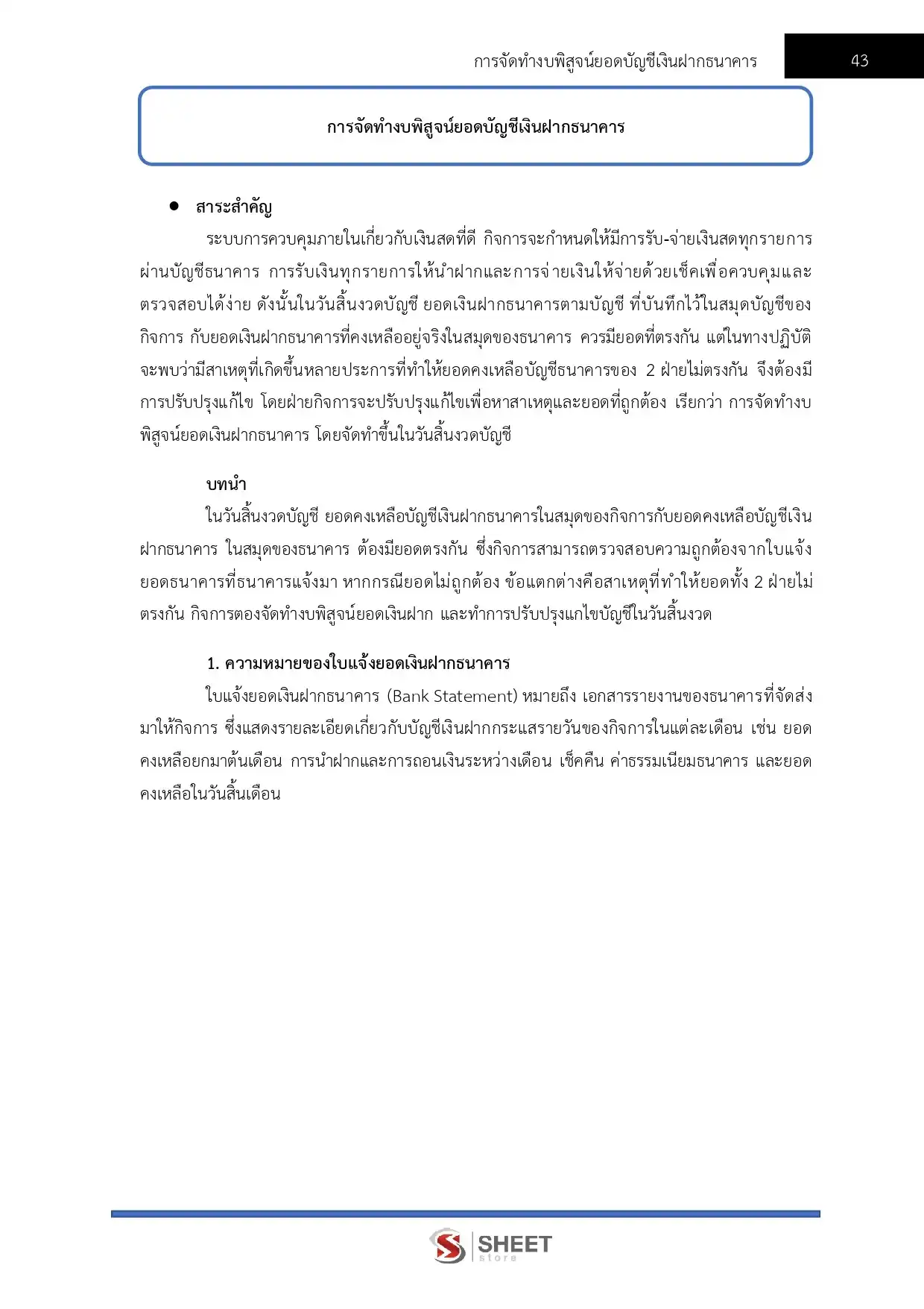 – การจัดทำงบพิสูจน์ยอดบัญชีเงินฝากธนาคาร