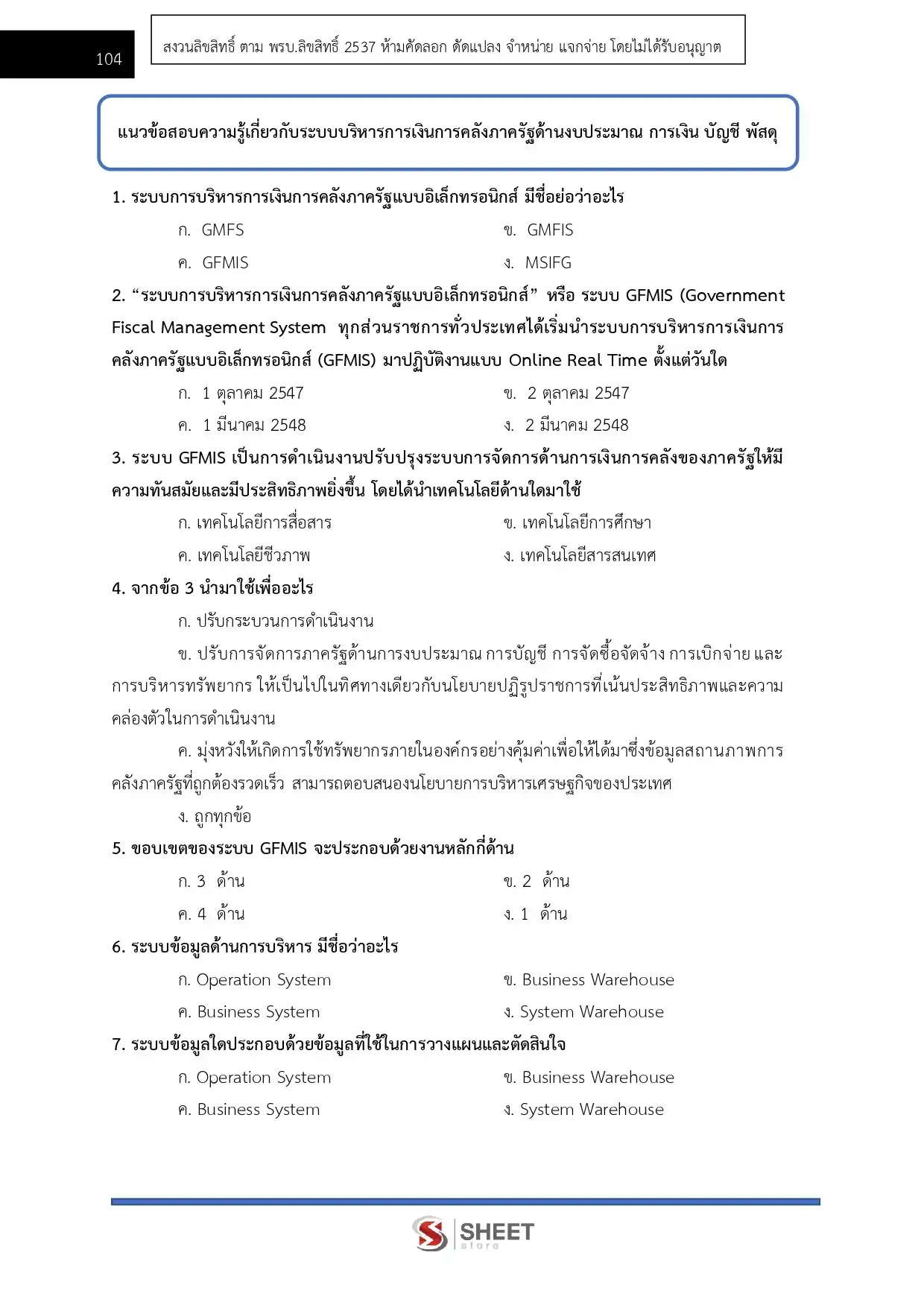– แนวข้อสอบความรู้เกี่ยวกับระบบบริหารการเงินการคลังภาครัฐด้านงบประมาณ การเงิน บัญชี พัสดุ