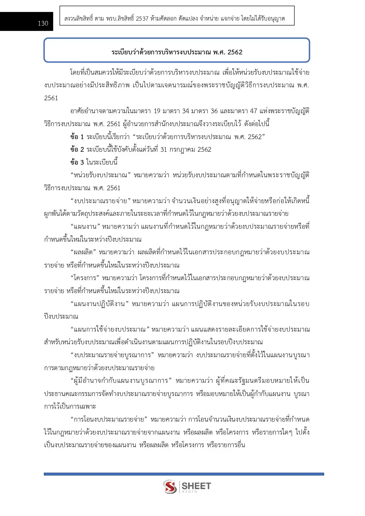 – ระเบียบว่าด้วยการบริหารงบประมาณ พ.ศ. 2562