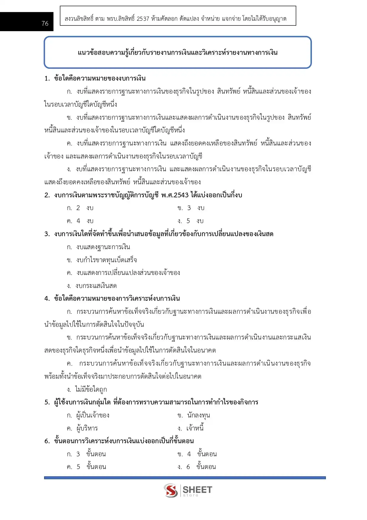 – แนวข้อสอบรายงานทางการเงินและการวิเคราะห์รายงานทางการเงิน