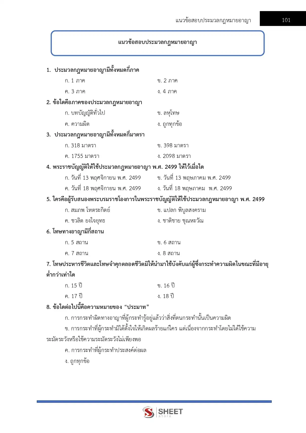 – แนวข้อสอบสรุปประมวลกฎหมายอาญา