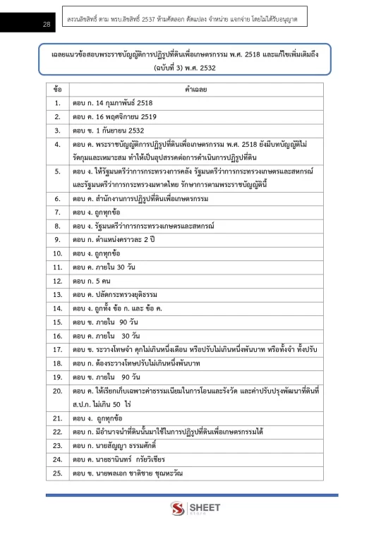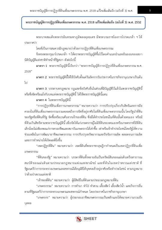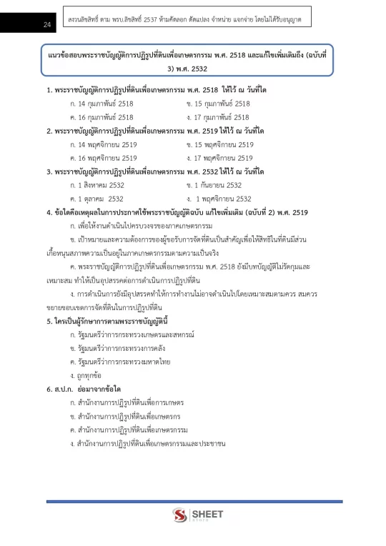 – แนวข้อสอบพระราชบัญญัติการปฏิรูปที่ดินเพื่อเกษตรกรรม พ.ศ. 2518 แก้ไขเพิ่มเติมถึง (ฉบับที่ 3) พ.ศ. 2532