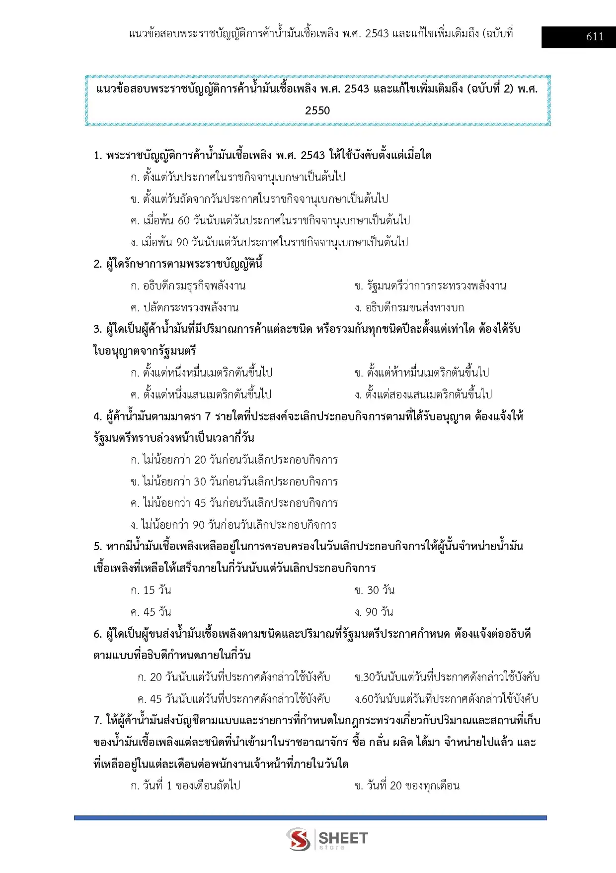 - พระราชบัญญัติควบคุมน้ำมันเชื้อเพลิง พ.ศ. 2542 และที่แก้ไขเพิ่มเติม (ฉบับที่ 2) พ.ศ. 2550