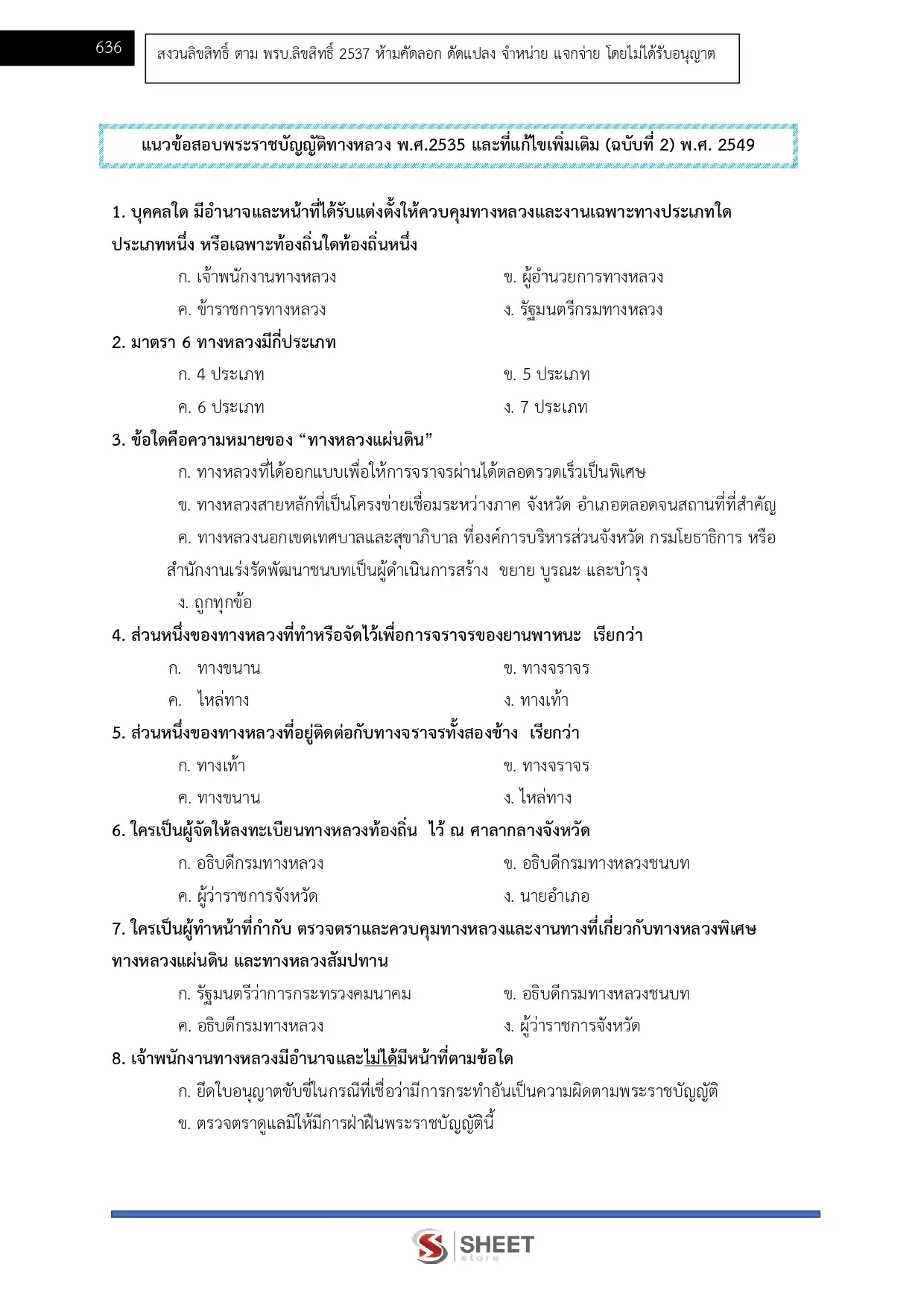 - แนวข้อสอบพระราชบัญญัติทางหลวง พ.ศ. 2535 และที่แก้ไขเพิ่มเติม (ฉบับที่ 2) พ.ศ. 2549
