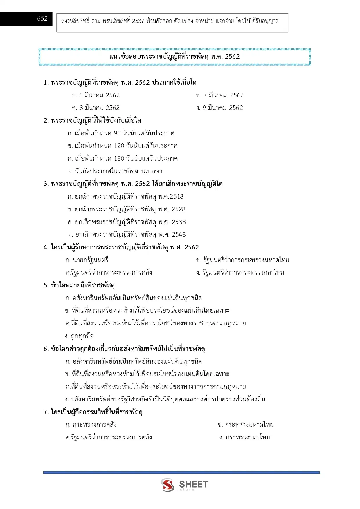 - แนวข้อสอบพระราชบัญญัติที่ราชพัสดุ พ.ศ. 2562
