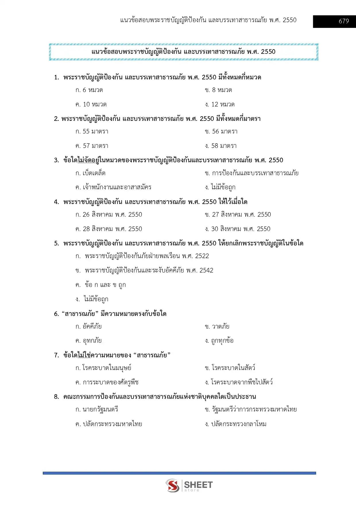 - แนวข้อสอบพระราชบัญญัติป้องกันและบรรเทาสาธารณภัย พ.ศ. 2550 และระเบียบที่เกี่ยวข้อง