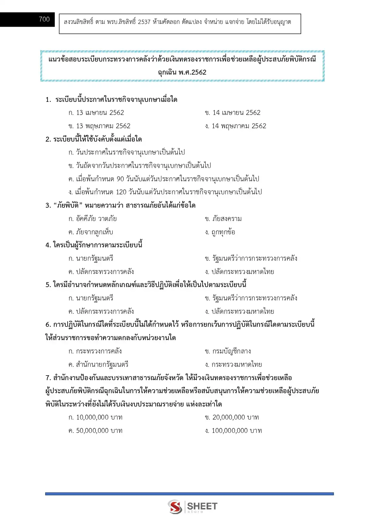 - แนวข้อสอบระเบียบกระทรวงการคลังว่าด้วยเงินทดรองราชการเพื่อช่วยเหลือผู้ประสบภัยพิบัติกรณีฉุกเฉิน พ.ศ. 2562