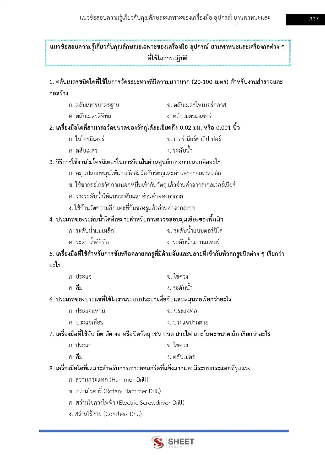 - ภาค ข: ความรู้ความสามารถเฉพาะตำแหน่ง นักจัดการงานช่างปฏิบัติการ สามารถดูรายละเอียดในหนังสือแต่ละตำแหน่ง