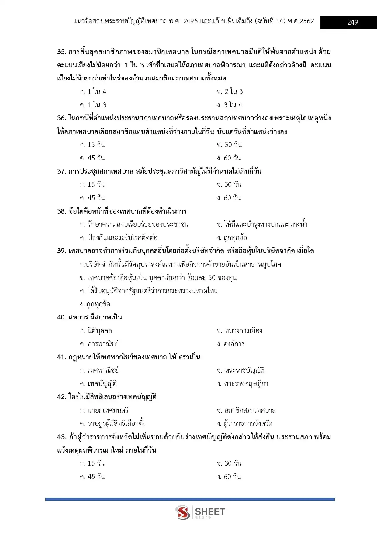- แนวข้อสอบพระราชบัญญัติเทศบาล พ.ศ. 2496 และที่แก้ไขเพิ่มเติมถึง (ฉบับที่ 14) พ.ศ. 2562)