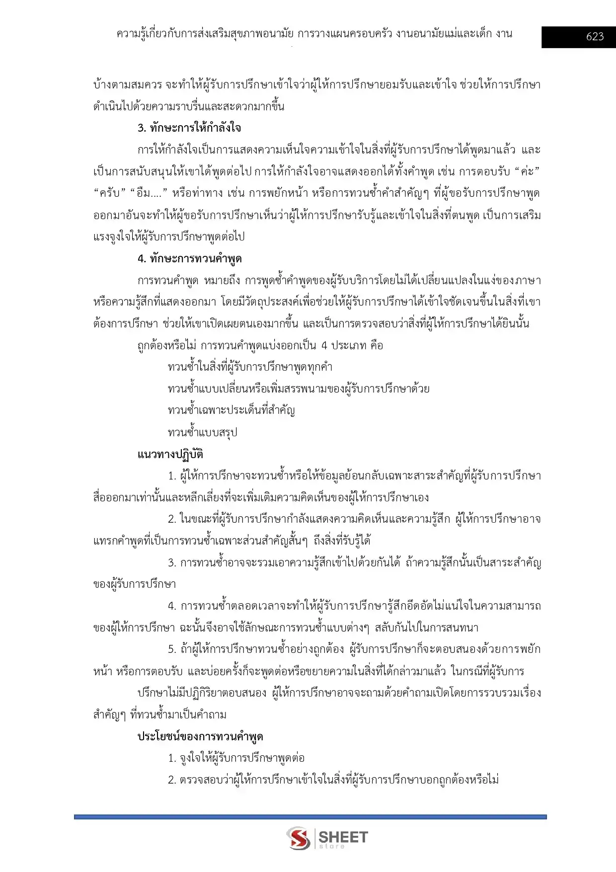 - ความรู้เกี่ยวกับการส่งเสริมสุขภาพ การเฝ้าระวังโรค การควบคุมป้องกันโรคและภัยสุขภาพ และการฟื้นฟูสุขภาพ การบริการอนามัยแม่และเด็ก การวางแผนครอบครัว