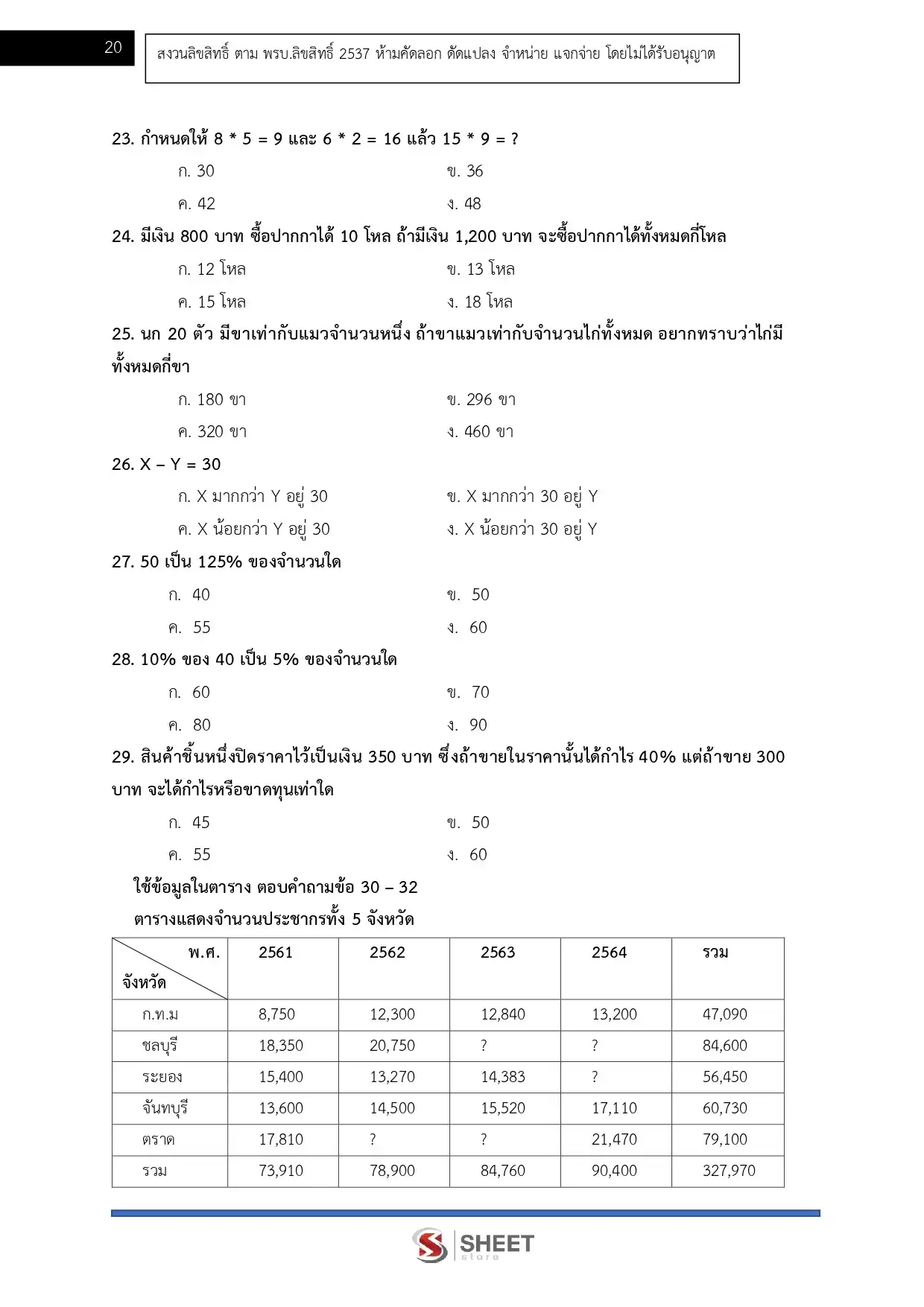- แนวข้อสอบวิชาคณิตศาสตร์ วิเคราะห์และสรุปเหตุผล เฉลยพร้อมวิธีทำ
