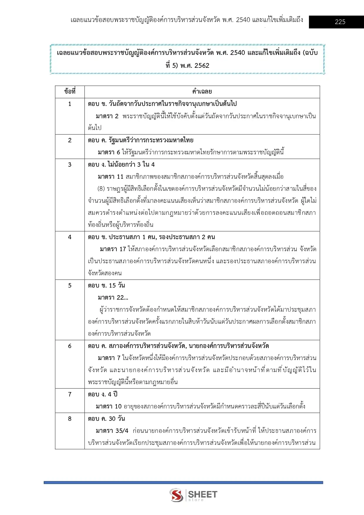 - แนวข้อสอบพระราชบัญญัติองค์การบริหารส่วนจังหวัด พ.ศ. 2540 และที่แก้ไขเพิ่มเติมถึง (ฉบับที่ 5) พ.ศ. 2562