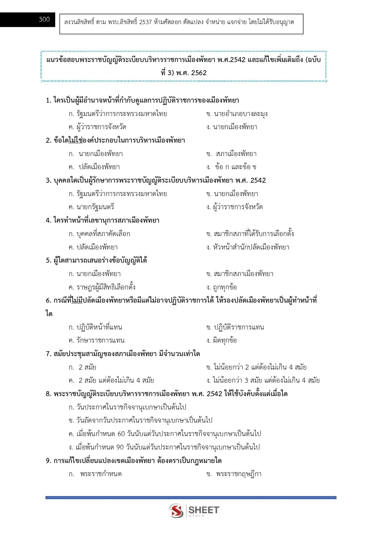 - แนวข้อสอบพระราชบัญญัติระเบียบบริหารราชการเมืองพัทยา พ.ศ. 2542 แก้ไขเพิ่มเติมถึง (ฉบับที่ 3) พ.ศ. 2562