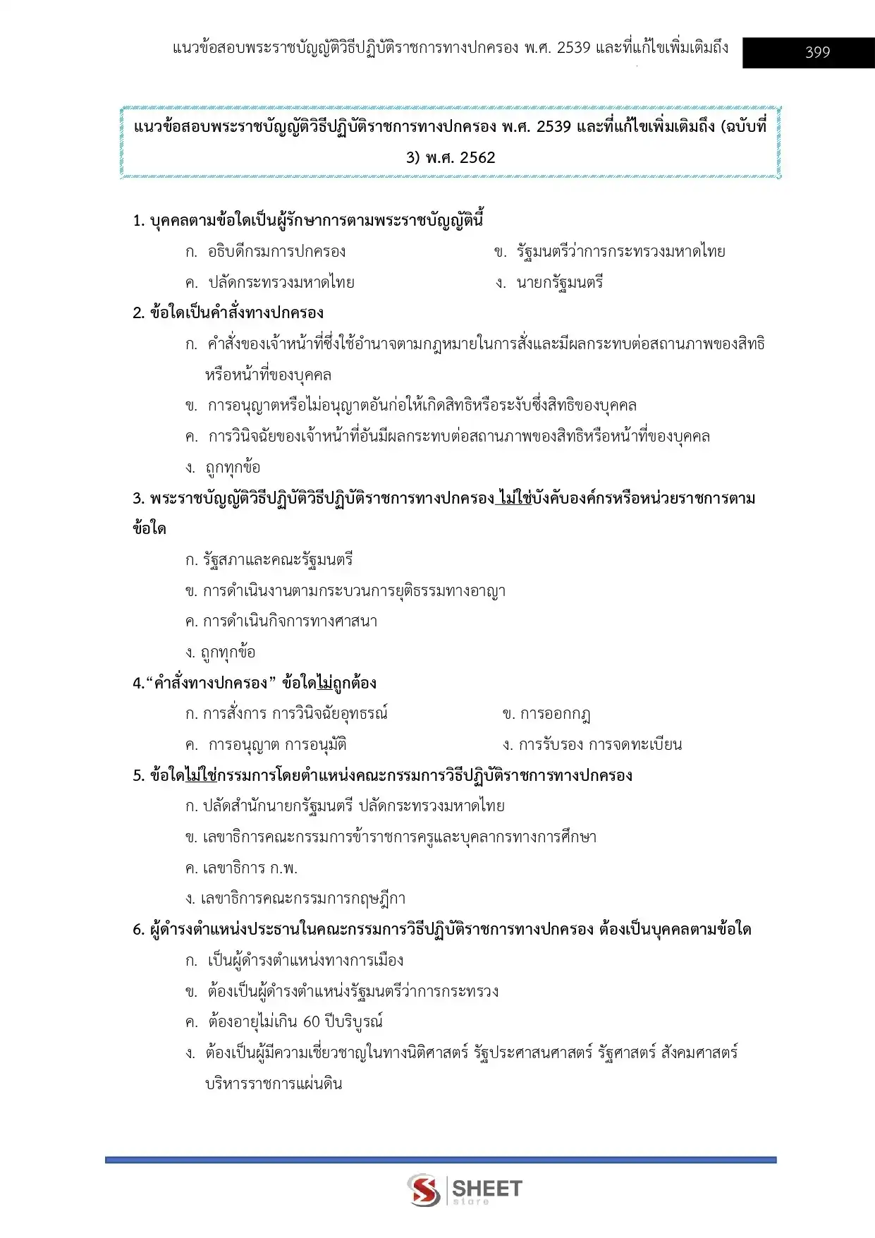 - แนวข้อสอบพระราชบัญญัติวิธีปฏิบัติราชการทางปกครอง พ.ศ. 2539 และที่แก้ไขเพิ่มเติมถึง (ฉบับที่ 3) พ.ศ. 2562