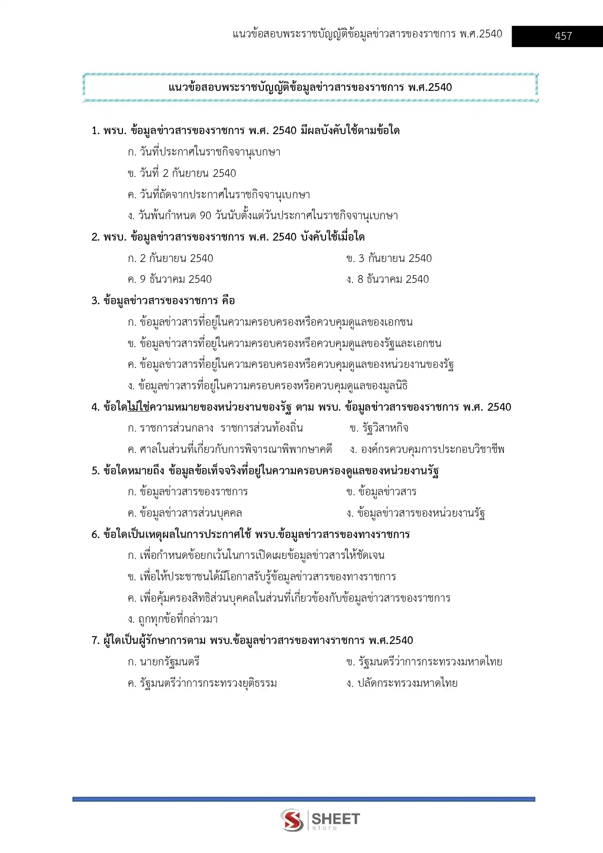 - แนวข้อสอบพระราชบัญญัติข้อมูลข่าวสารของทางราชการ พ.ศ. 2540