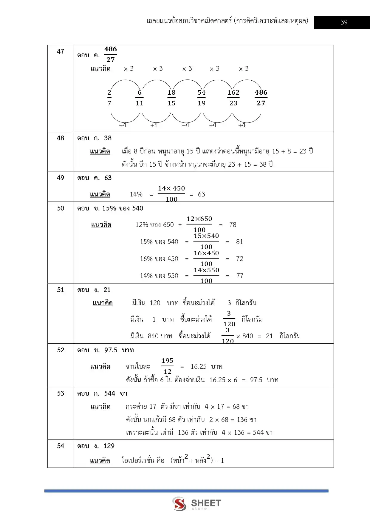 - แนวข้อสอบวิชาคณิตศาสตร์ วิเคราะห์และสรุปเหตุผล เฉลยพร้อมวิธีทำ