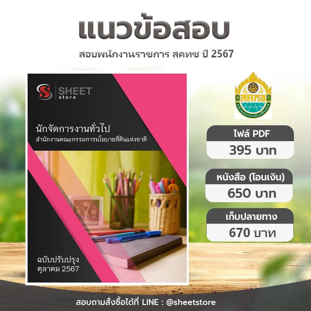 แนวข้อสอบ นักจัดการงานทั่วไป สำนักงานคณะกรรมการนโยบายที่ดินแห่งชาติ สคทช ฉบับปรับปรุงล่าสุด ตุลาคม 2567