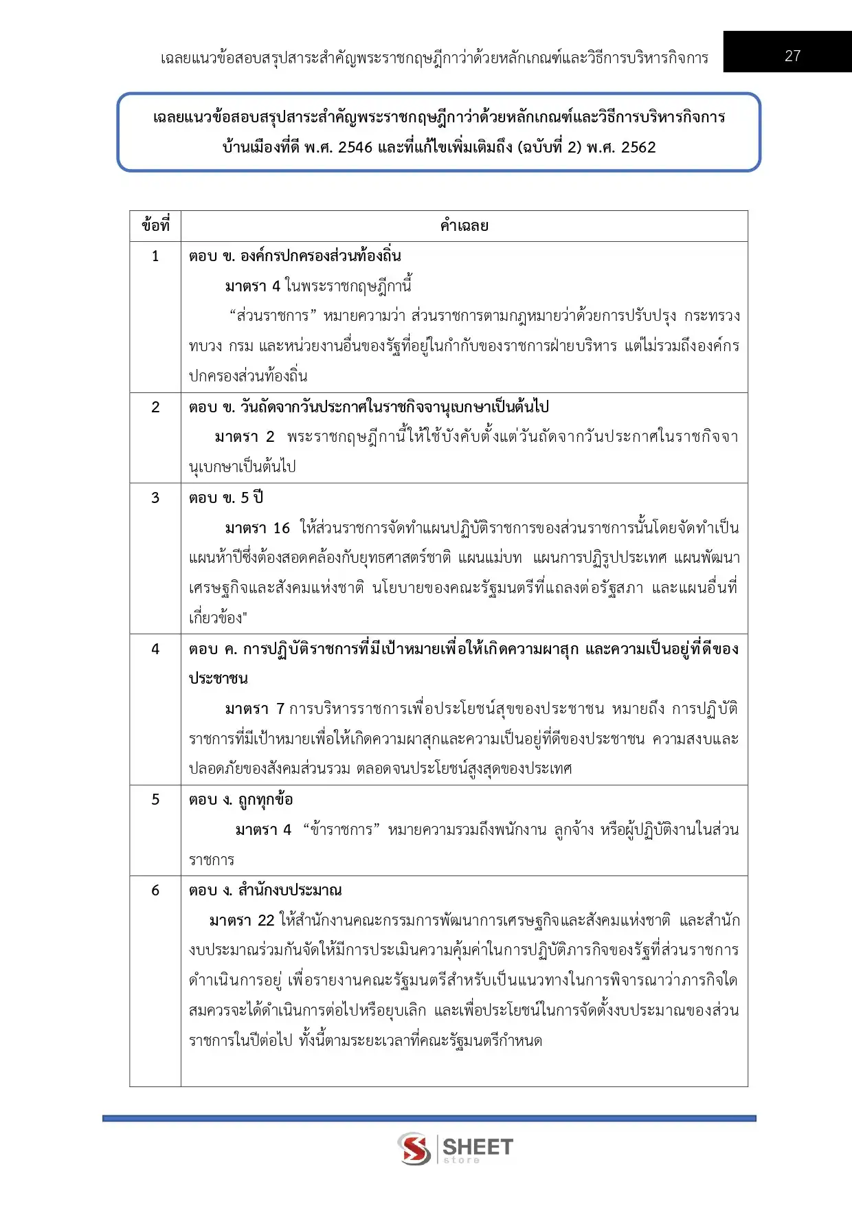 – แนวข้อสอบสรุปสาระสำคัญพระราชกฤษฎีกาว่าด้วยหลักเกณฑ์และวิธีการบริหารกิจการบ้านเมืองที่ดี พ.ศ. 2546 และที่แก้ไขเพิ่มเติมถึง (ฉบับที่ 2) พ.ศ. 2562