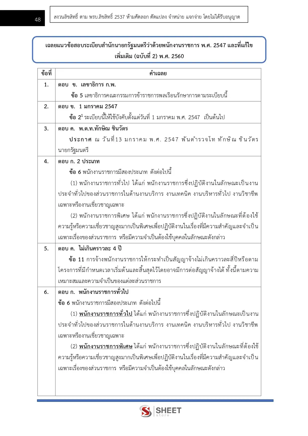 – แนวข้อสอบสรุปสาระสำคัญระเบียบสำนักนายกรัฐมนตรีว่าด้วยพนักงานราชการ พ.ศ. 2547 และแก้ไขเพิ่มเติม (ฉบับที่ 2) พ.ศ. 2560