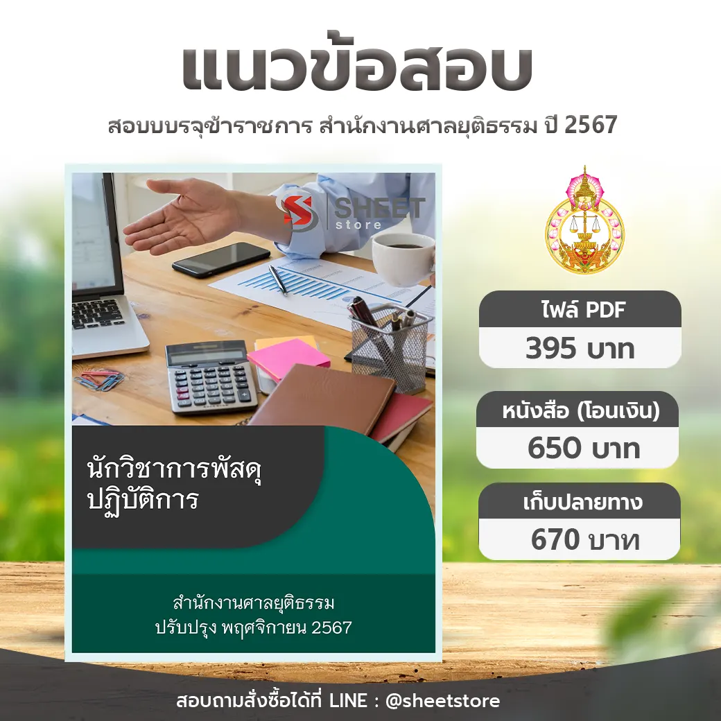 แนวข้อสอบ นักวิชาการพัสดุปฏิบัติการ สำนักงานศาลยุติธรรม ฉบับอัพเดตล่าสุด พฤศจิกายน 2567