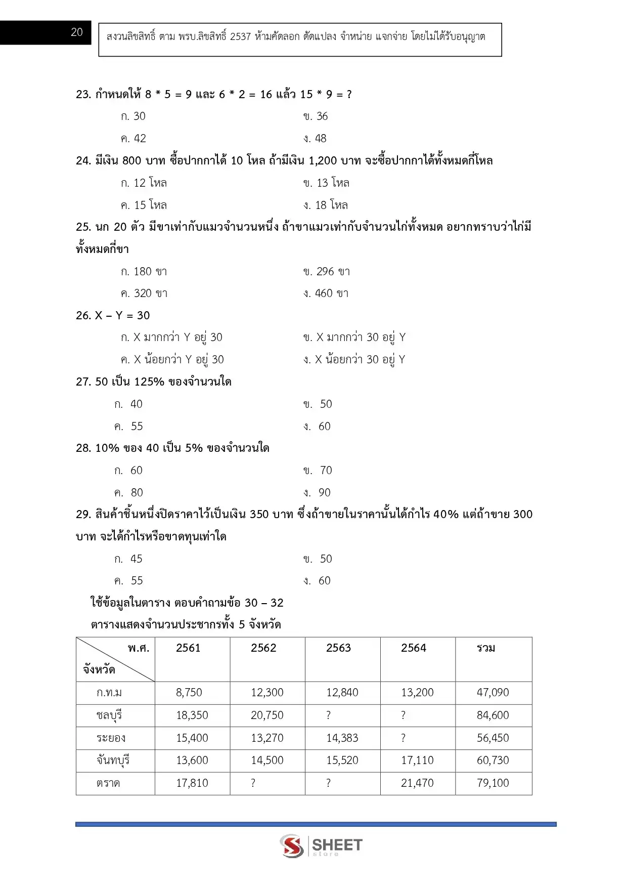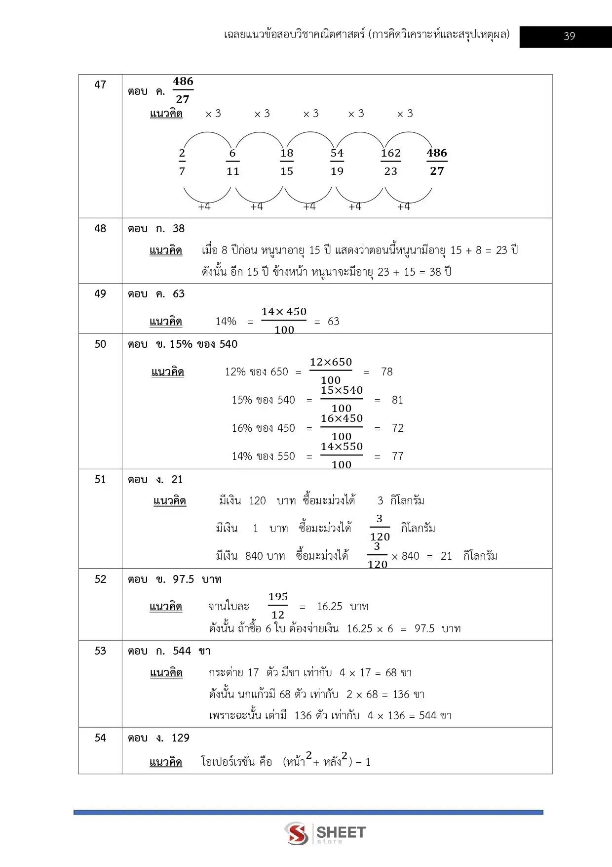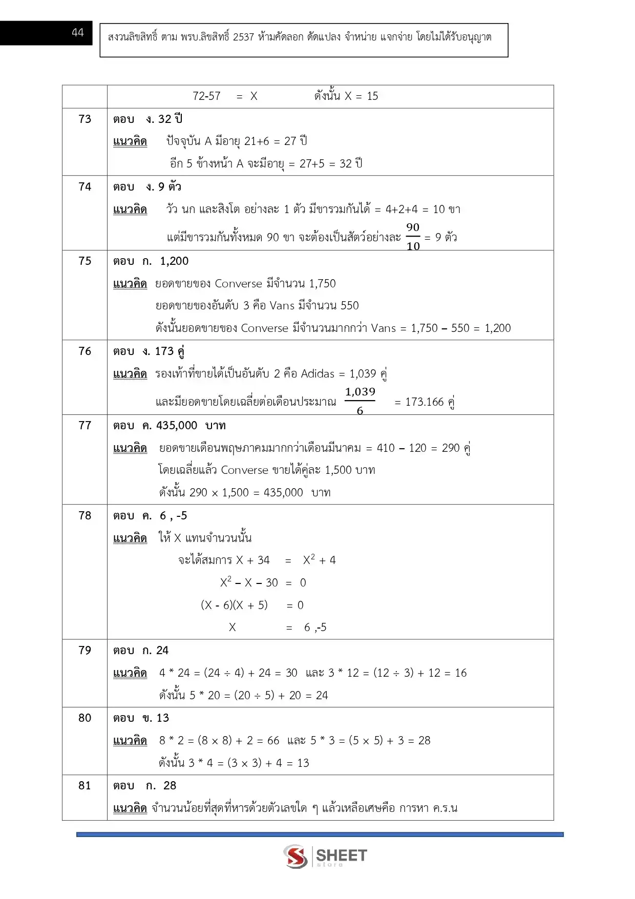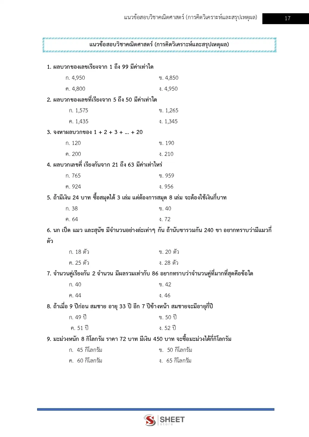 - แนวข้อสอบวิชาคณิตศาสตร์ วิเคราะห์และสรุปเหตุผล เฉลยพร้อมวิธีทำ