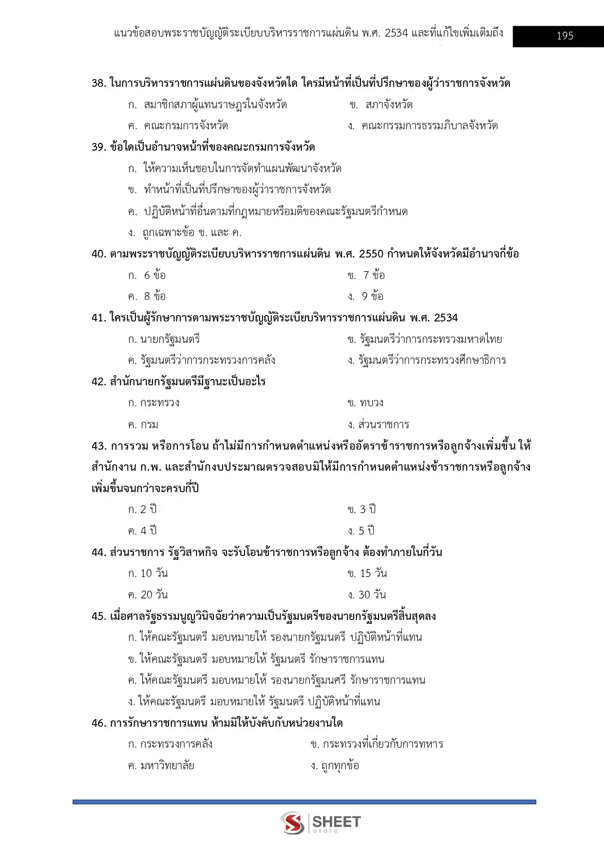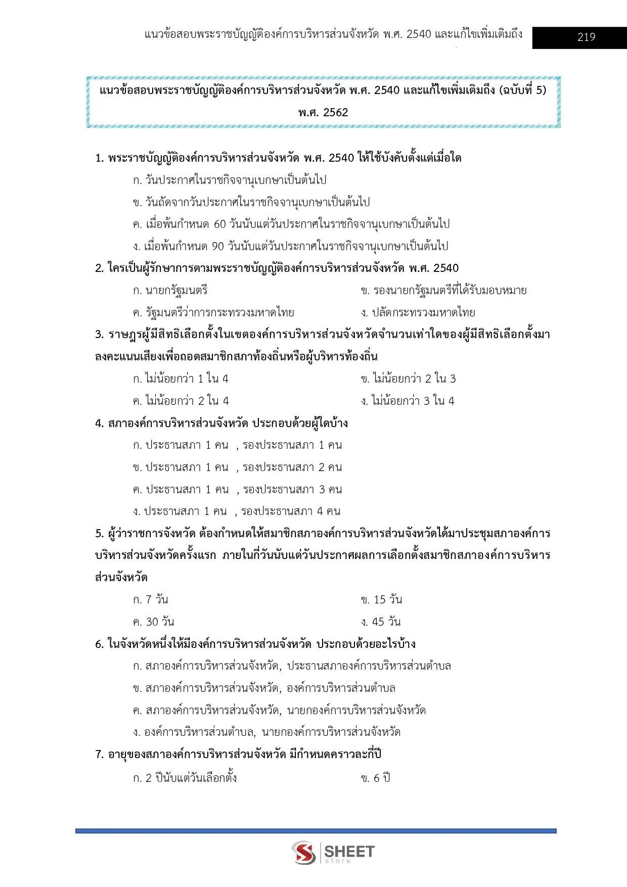 - แนวข้อสอบพระราชบัญญัติองค์การบริหารส่วนจังหวัด พ.ศ. 2540 และที่แก้ไขเพิ่มเติมถึง (ฉบับที่ 5) พ.ศ. 2562