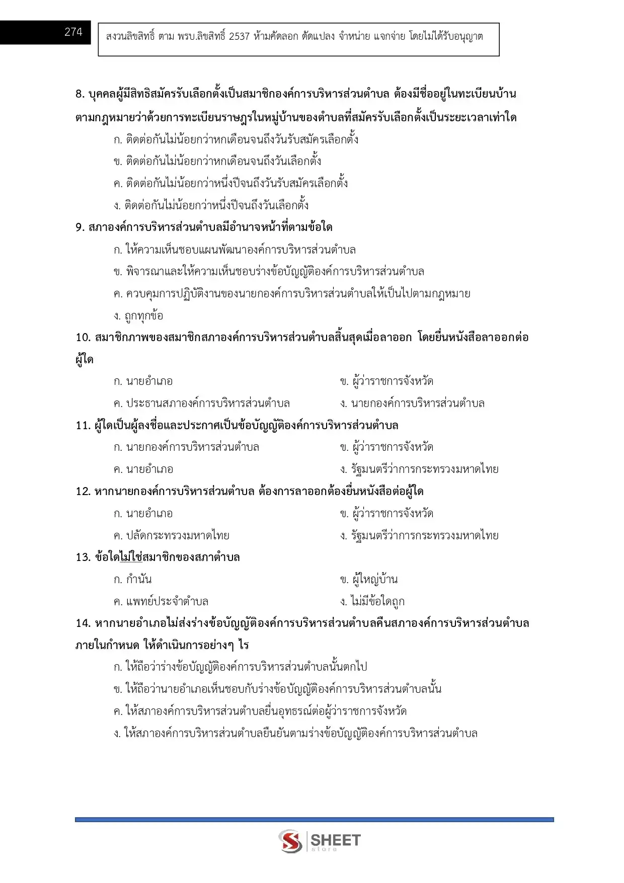 - แนวข้อสอบพระราชบัญญัติสภาตำบลและองค์การบริหารส่วนตำบล พ.ศ. 2537 และที่แก้ไขเพิ่มเติม พ.ศ. 2562