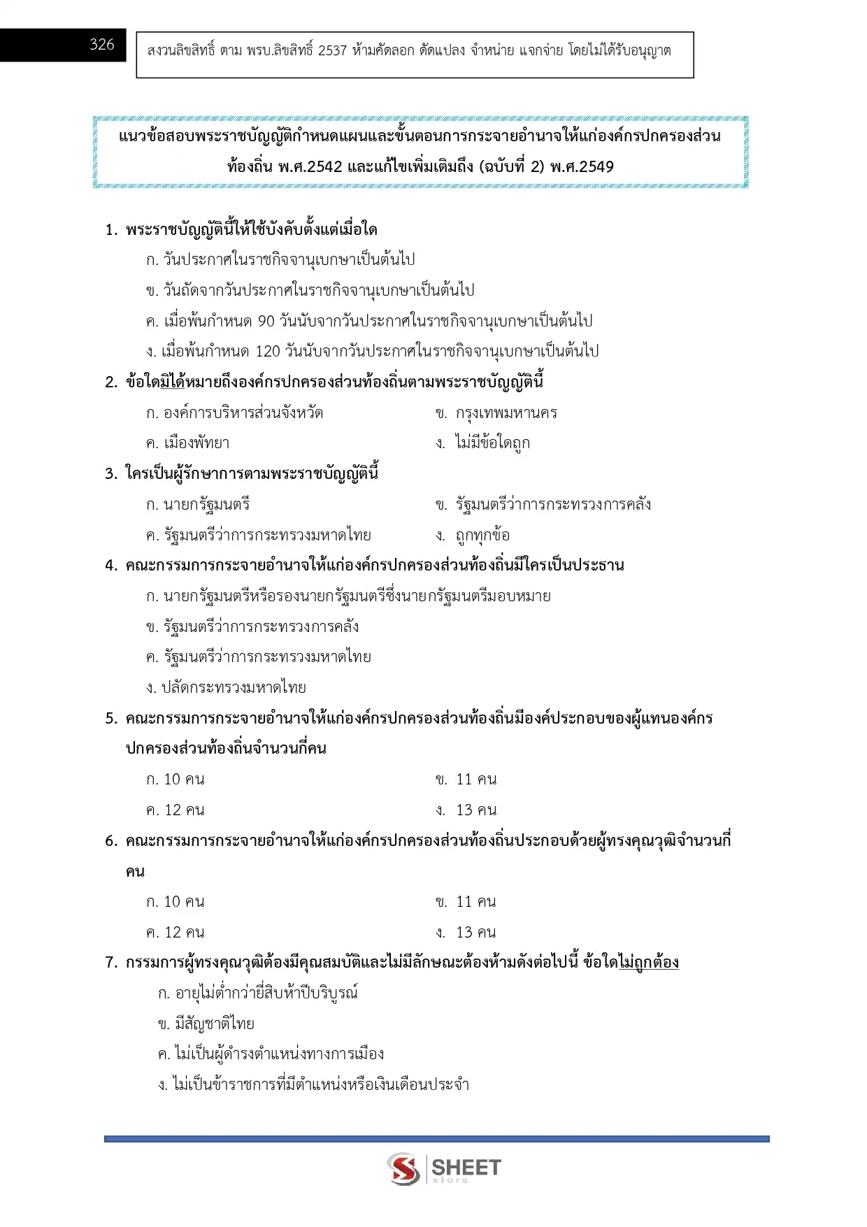 - แนวข้อสอบพระราชบัญญัติกำหนดแผนและขั้นตอนการกระจายอำนาจให้แก่องค์กรปกครองส่วนท้องถิ่น พ.ศ. 2542 และที่แก้ไขเพิ่มเติมถึง (ฉบับที่ 2) พ.ศ. 2549