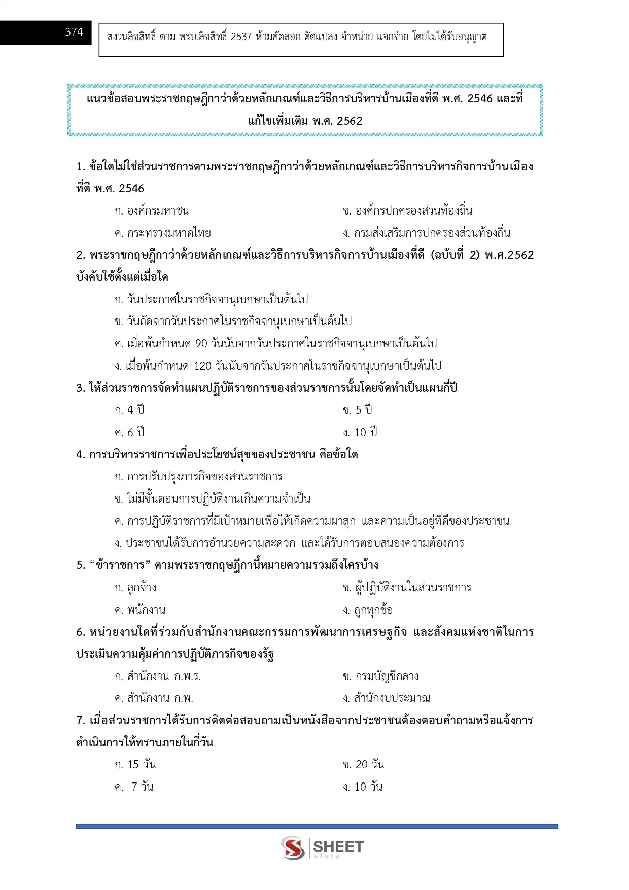 - แนวข้อสอบพระราชกฤษฎีกาว่าด้วยหลักเกณฑ์และวิธีการบริหารบ้านเมืองที่ดี พ.ศ. 2546 และที่แก้ไขเพิ่มเติม พ.ศ. 2562