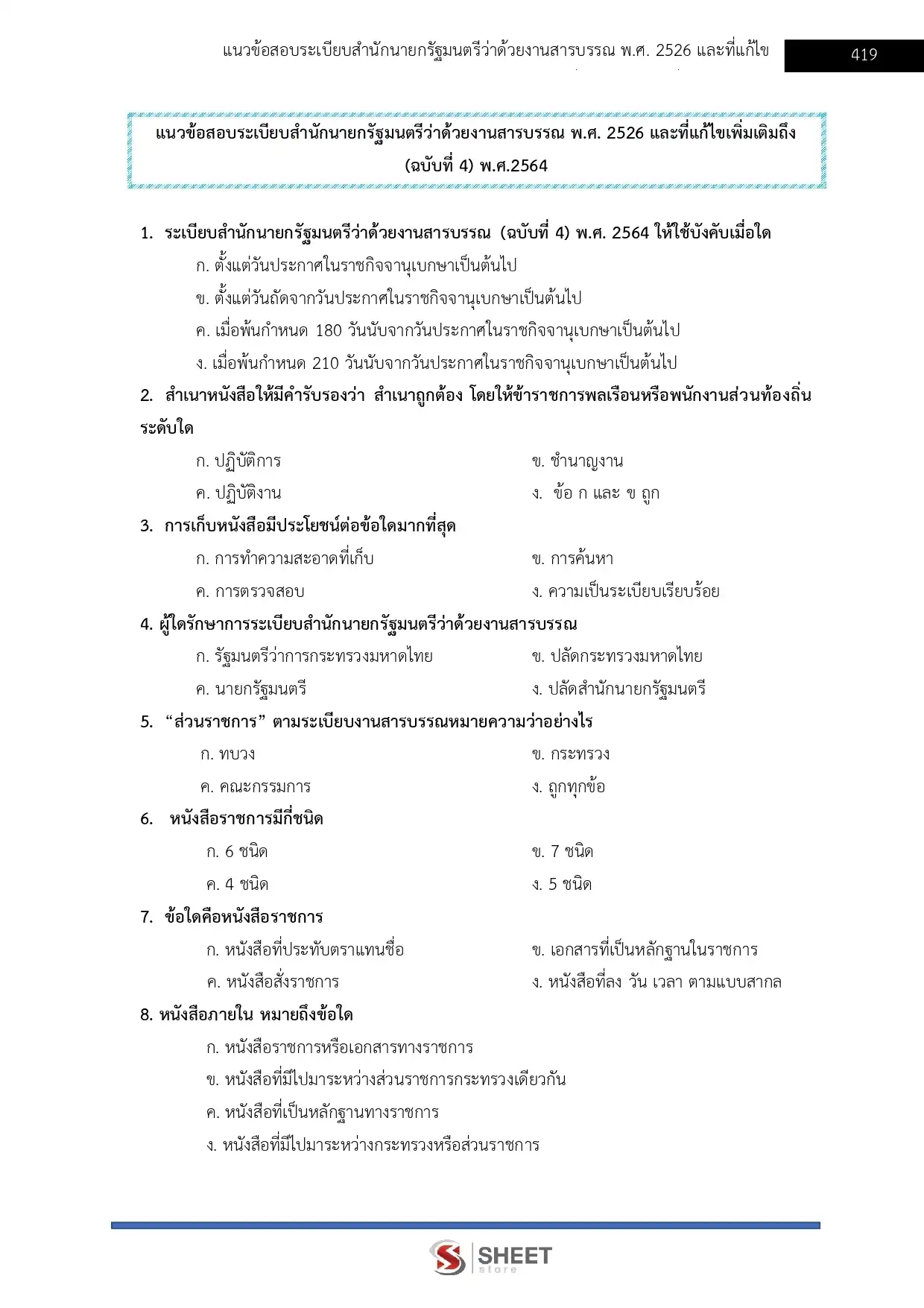 - แนวข้อสอบระเบียบสำนักนายกรัฐมนตรีว่าด้วยงานสารบรรณ พ.ศ. 2526 และที่แก้ไขเพิ่มเติมถึง (ฉบับที่ 4) พ.ศ. 2564