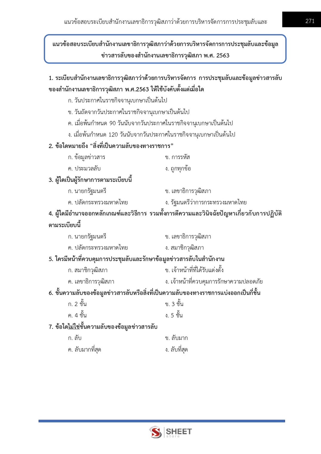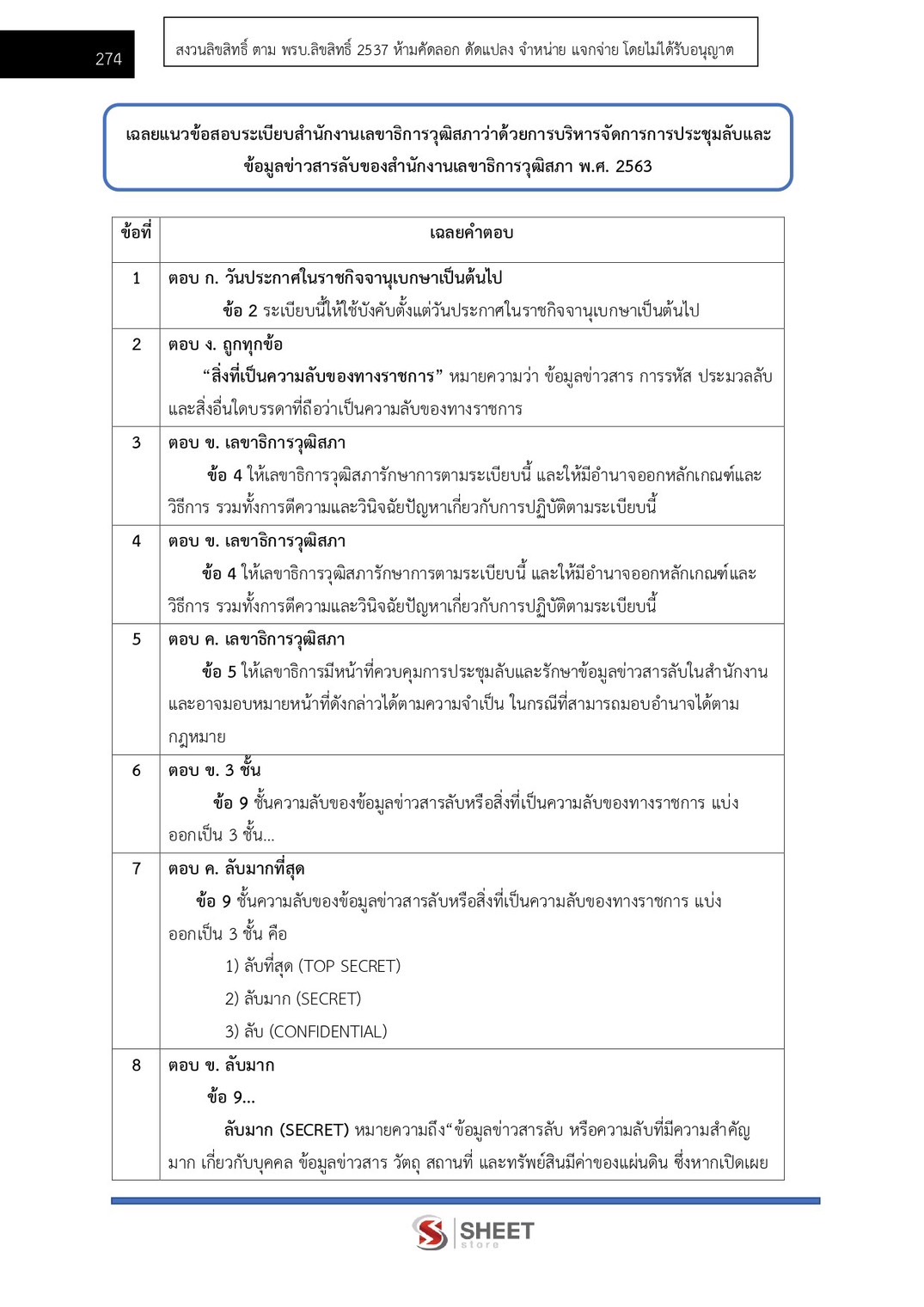 – แนวข้อสอบระเบียบสำนักงานเลขาธิการวุฒิสภาว่าด้วยการบริหารจัดการการประชุมลับและข้อมูลข่าวสารลับของสำนักงานเลขาธิการวุฒิสภา. พ.ศ. 2563