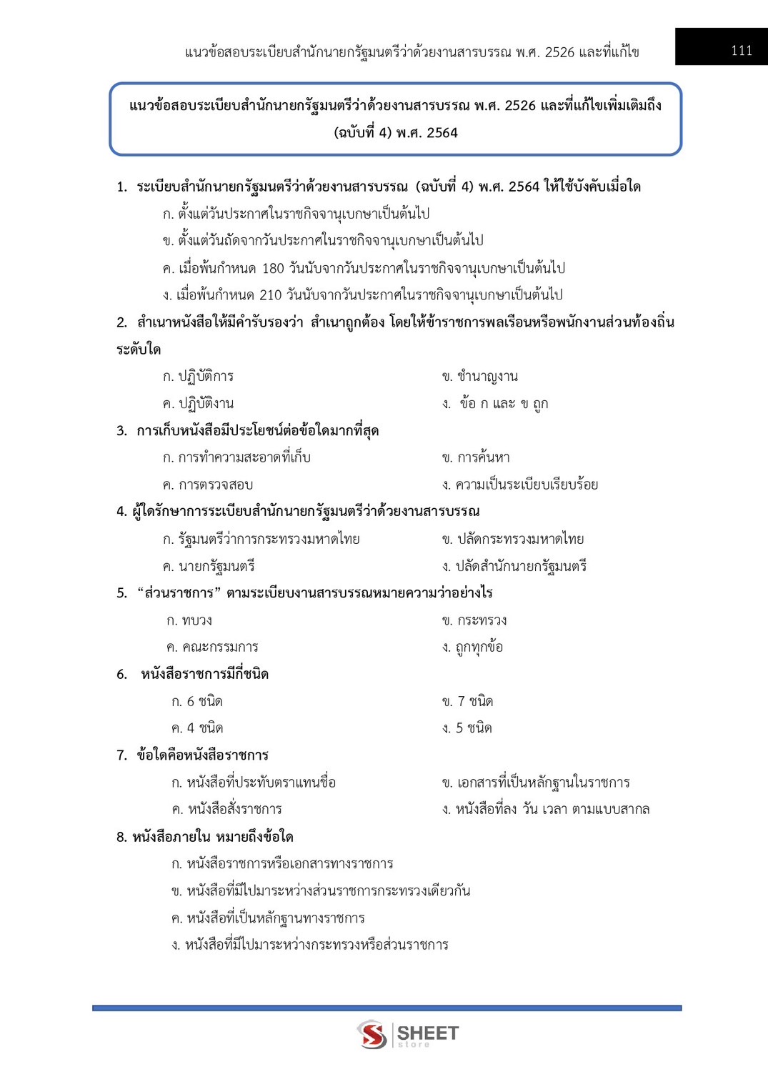 – แนวข้อสอบระเบียบสำนักนายกรัฐมนตรีว่าด้วยงานสารบรรณ พ.ศ. 2526 และแก้ไขเพิ่มเติมถึง (ฉบับที่ 4) พ.ศ. 2564