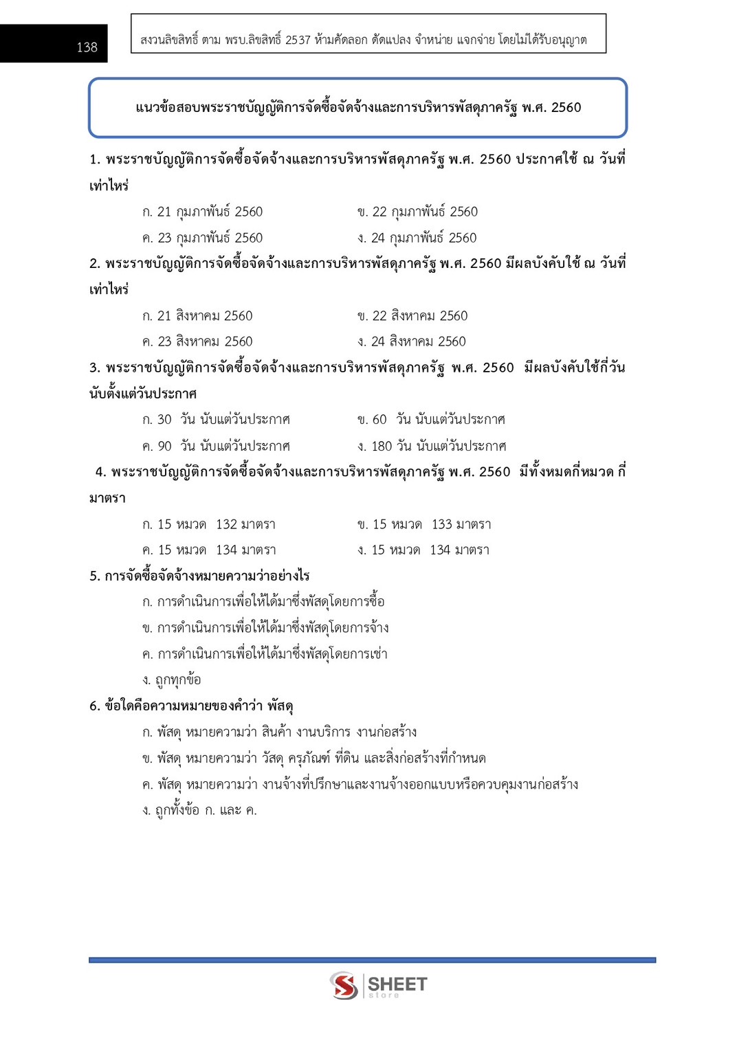 – แนวข้อสอบพระราชบัญญัติการจัดซื้อจัดจ้างและการบริหารพัสดุภาครัฐ พ.ศ. 2560