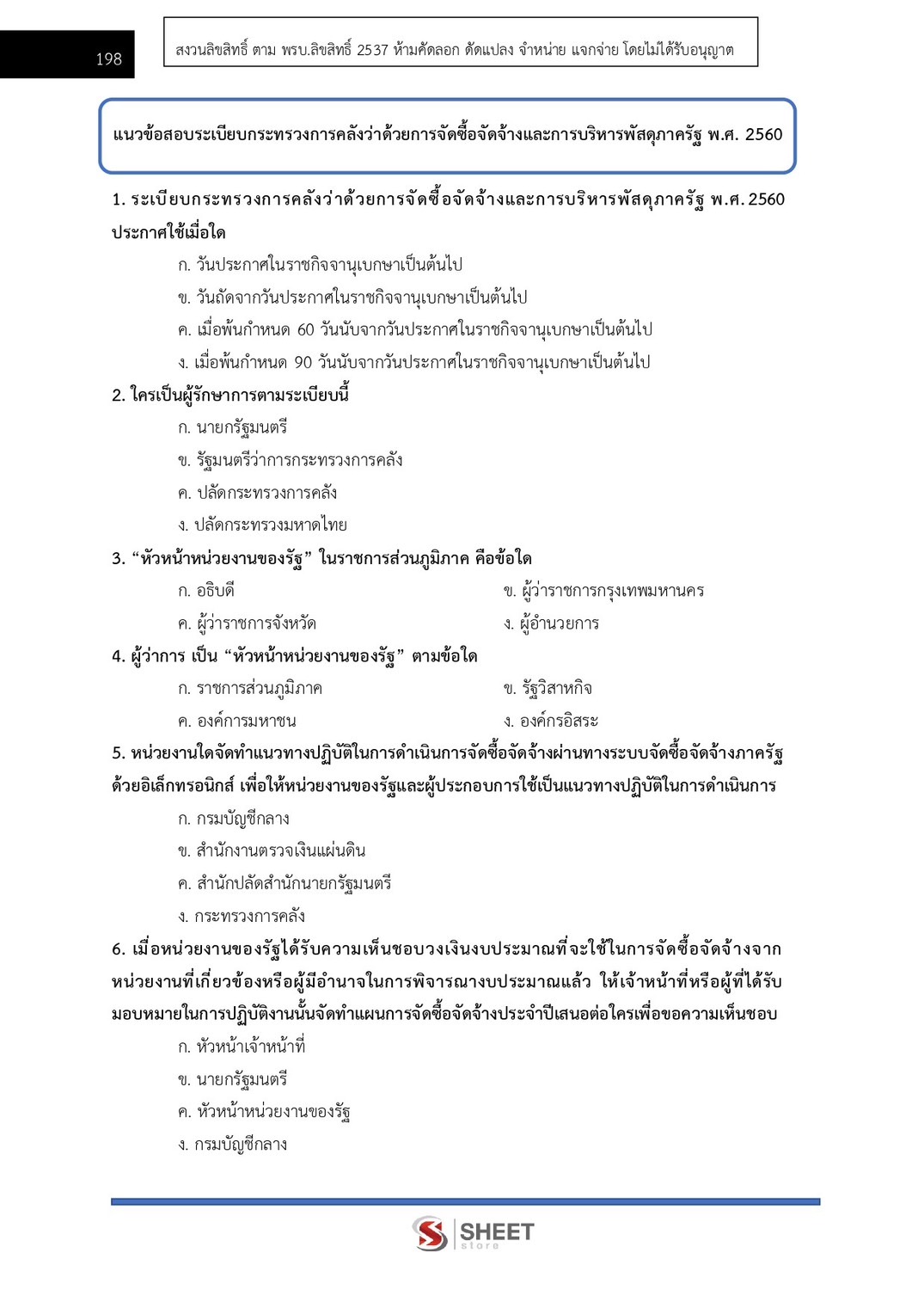– แนวข้อสอบระเบียบกระทรวงการคลังว่าด้วยการจัดซื้อจัดจ้างและการบริหารพัสดุภาครัฐ พ.ศ. 2560