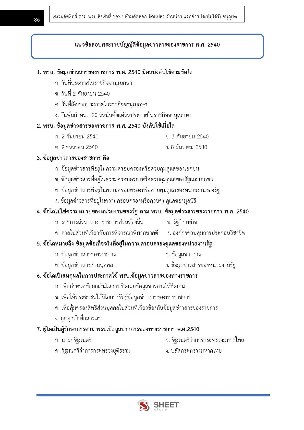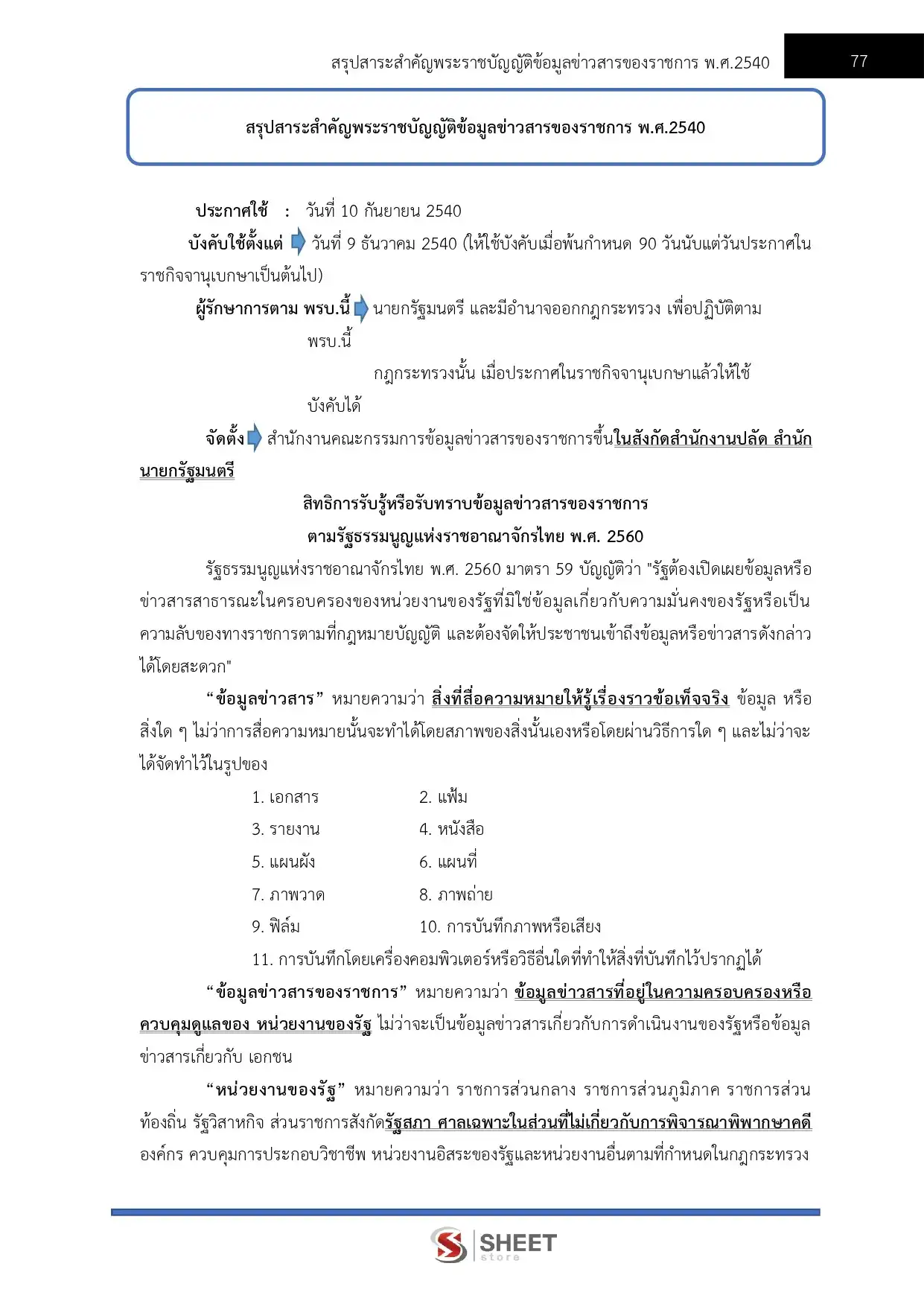 – แนวข้อสอบสรุปสาระสำคัญพระราชบัญญัติข้อมูลข่าวสารของราชการ พ.ศ. 2540