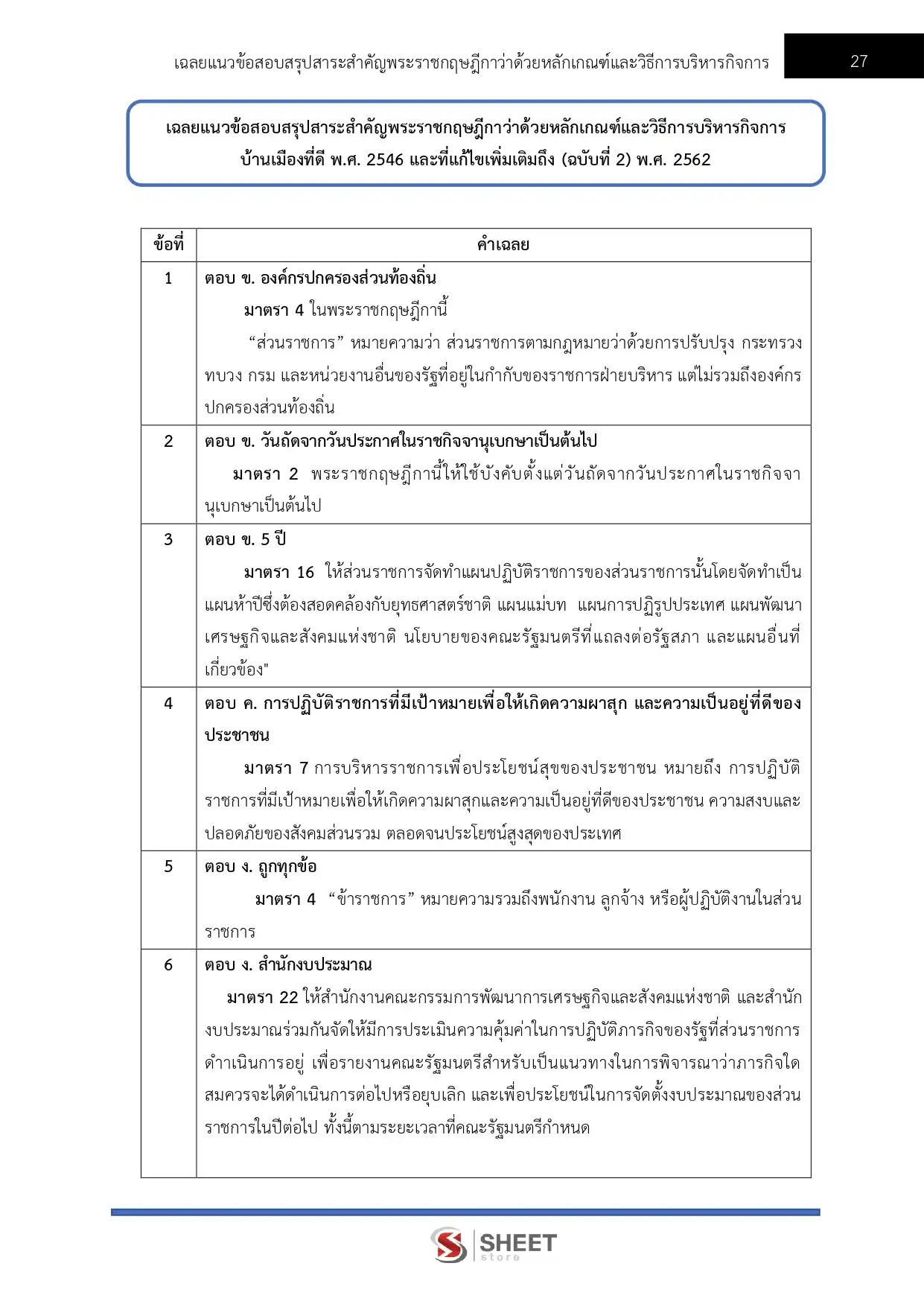 – แนวข้อสอบสรุปสาระสำคัญพระราชกฤษฎีกาว่าด้วยหลักเกณฑ์และวิธีการบริหารกิจการบ้านเมืองที่ดี พ.ศ. 2546 และที่แก้ไขเพิ่มเติมถึง (ฉบับที่ 2) พ.ศ. 2562