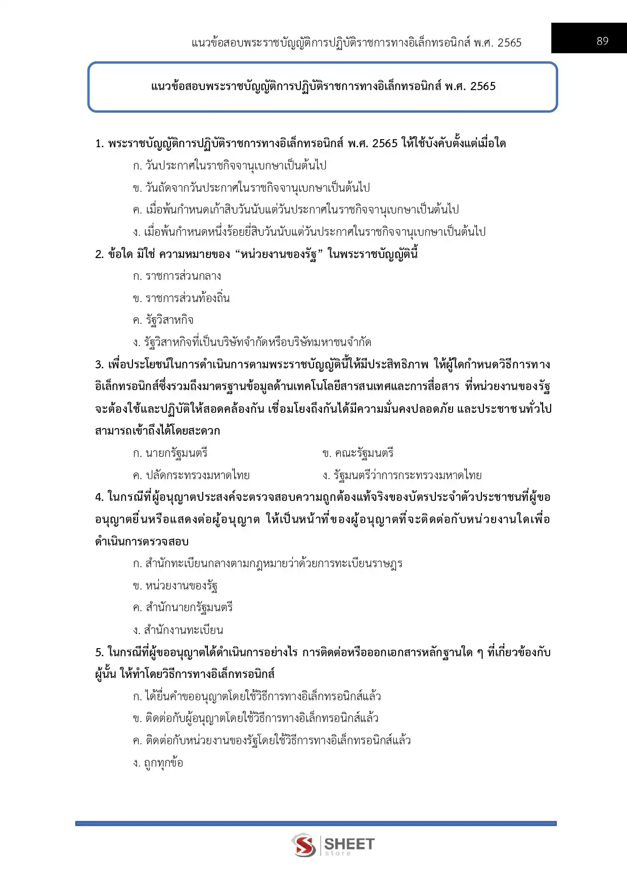 – แนวข้อสอบพระราชบัญญัติการปฏิบัติราชการทางอิเล็กทรอนิกส์ พ.ศ. 2565