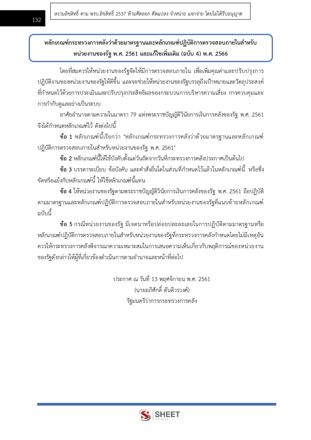 – แนวข้อสอบหลักเกณฑ์กระทรวงการคลังว่าด้วยมาตรฐานและหลักเกณฑ์ปฏิบัติการตรวจสอบภายในสำหรับหน่วยงานของรัฐ พ.ศ. 2561 และแก้ไขเพิ่มเติม (ฉบับ 4) พ.ศ. 2566