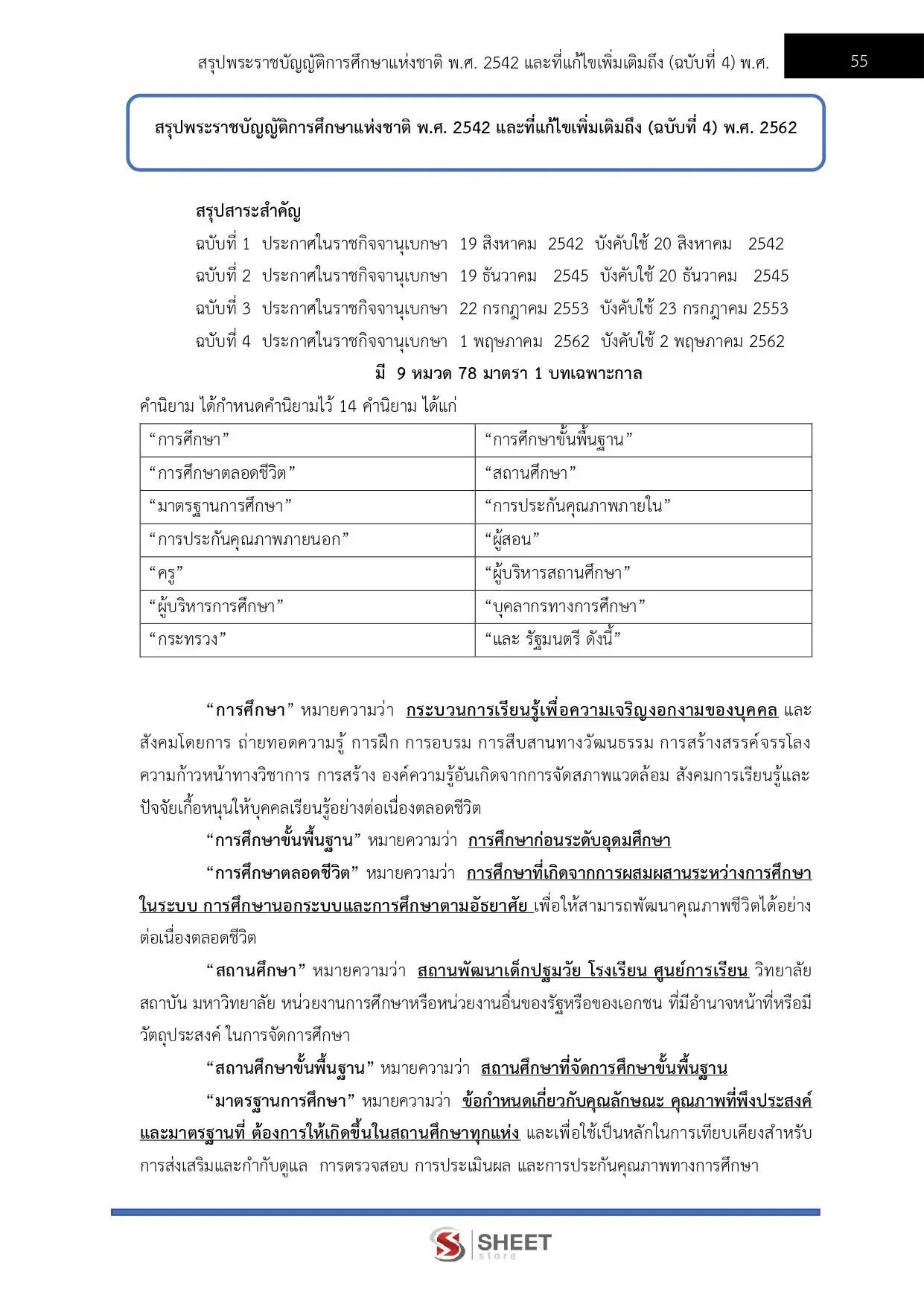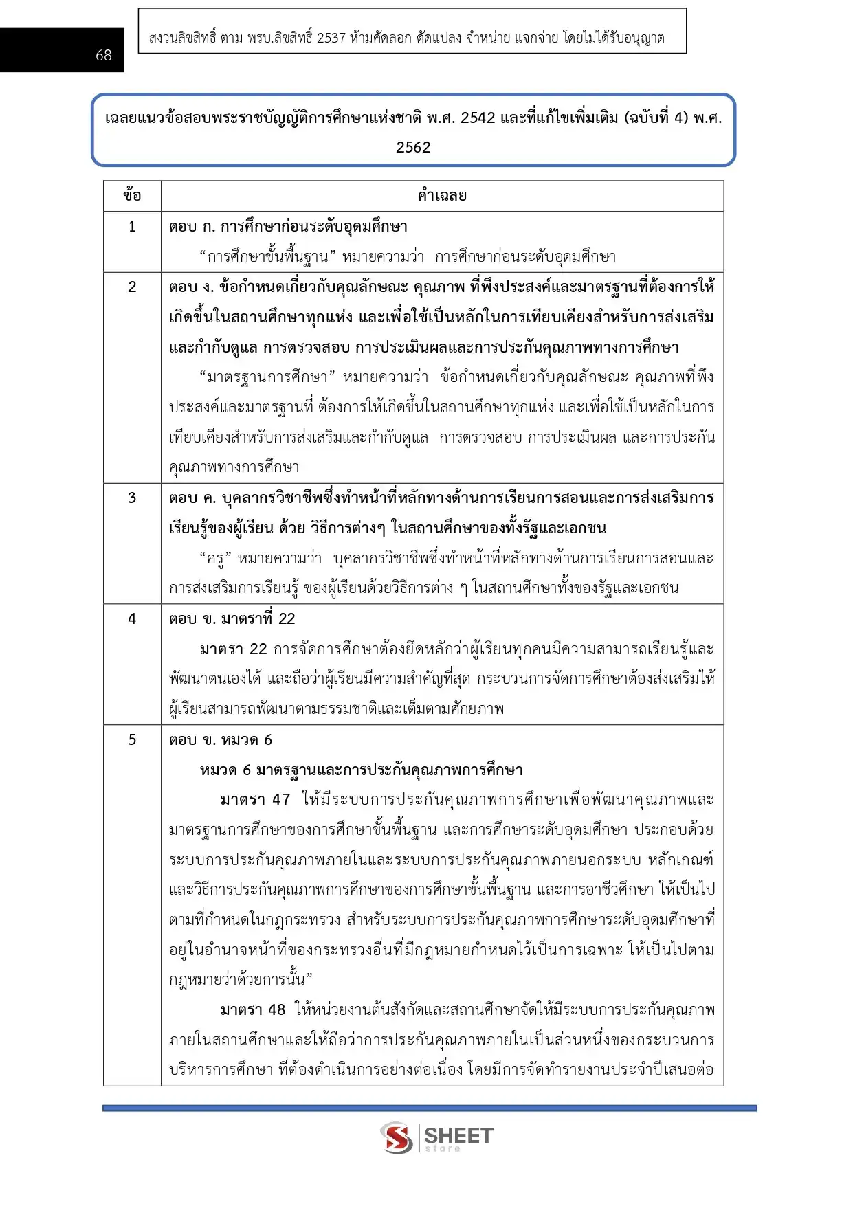 – แนวข้อสอบพระราชบัญญัติการศึกษาแห่งชาติ พ.ศ. 2542 และที่แก้ไขเพิ่มเติมถึง (ฉบับที่ 4) พ.ศ. 2562