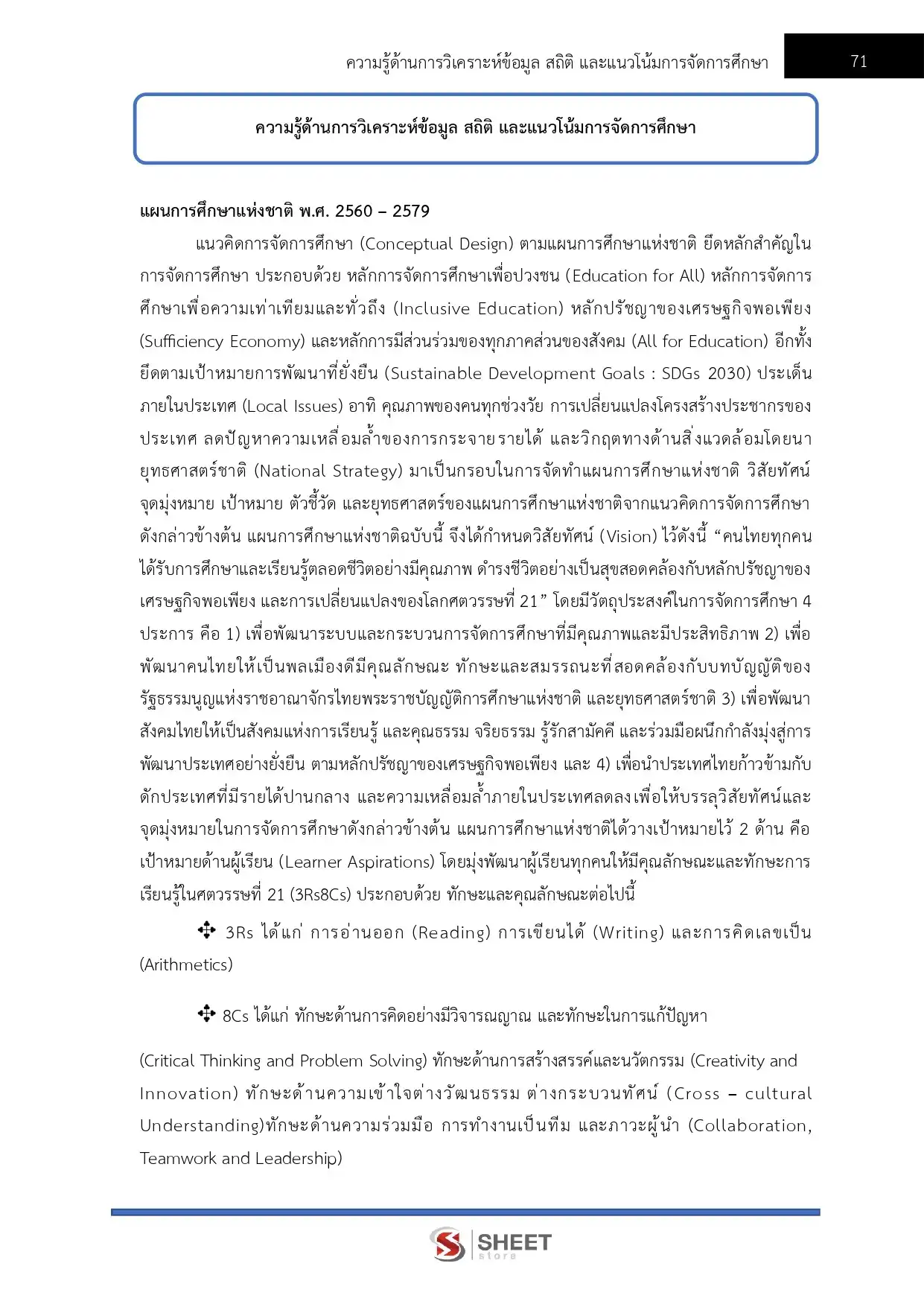 – ความรู้ด้านการวิเคราะห์ข้อมูล สถิติ และแนวโน้มการจัดการศึกษา