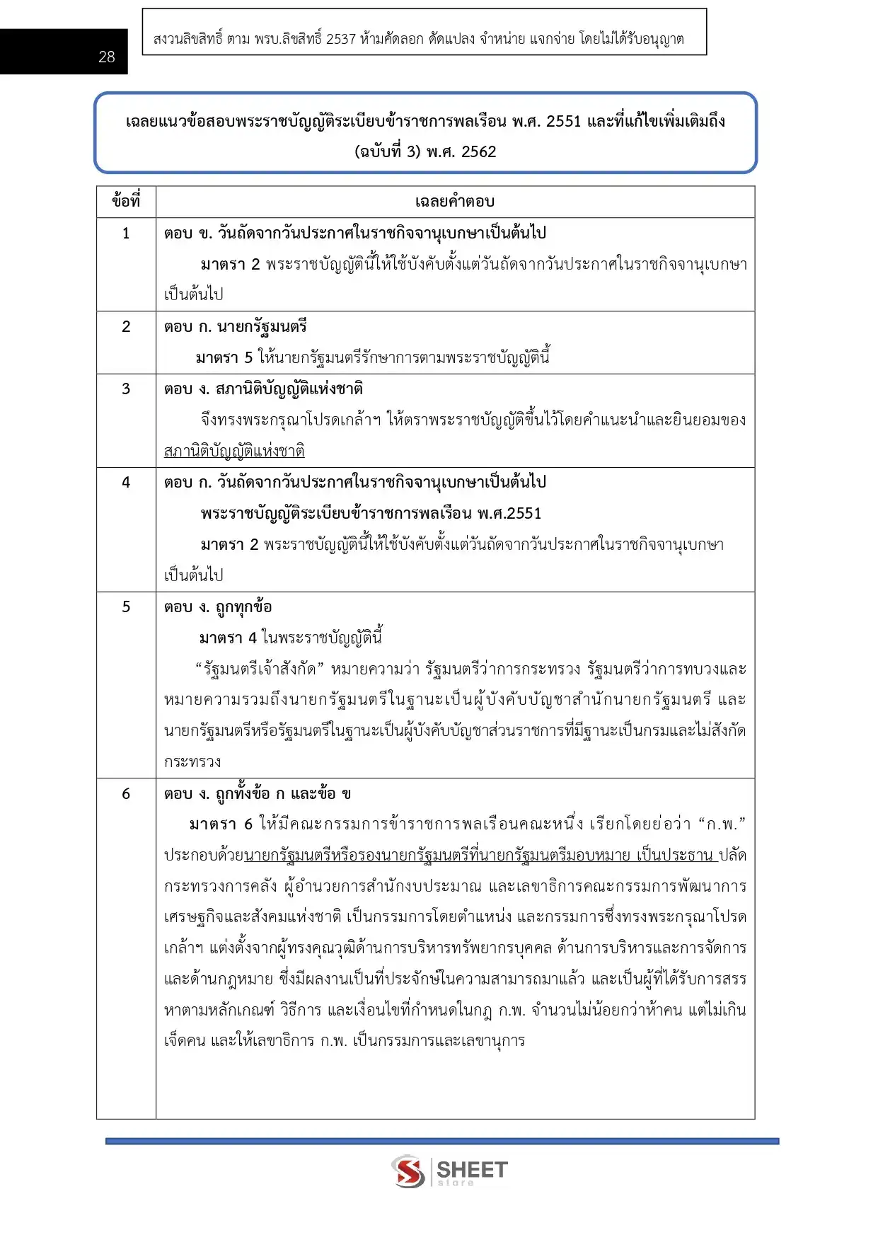 – แนวข้อสอบพระราชบัญญัติระเบียบข้าราชการพลเรือน พ.ศ. 2551 และแก้ไขเพิ่มเติม (ฉบับที่ 3) พ.ศ. 2562