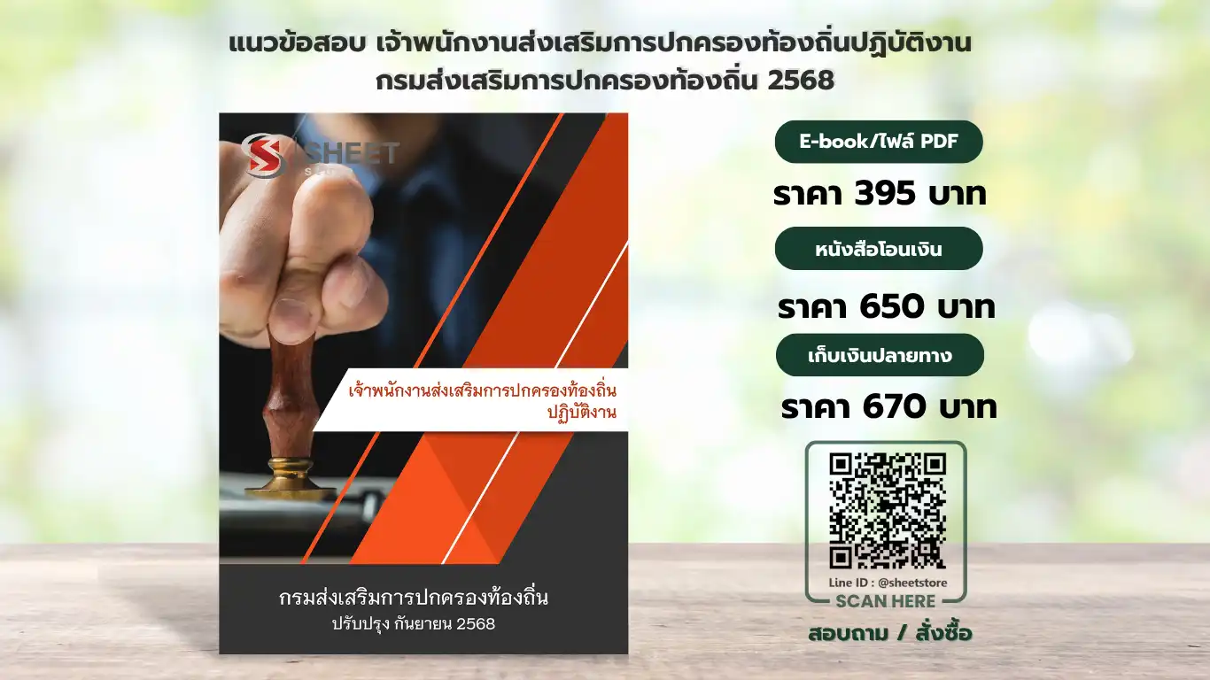 แนวข้อสอบ เจ้าพนักงานส่งเสริมการปกครองท้องถิ่นปฏิบัติงาน กรมส่งเสริมการปกครองท้องถิ่น (กสถ.) ฉบับปรับปรุงล่าสุด กันยายน 2568